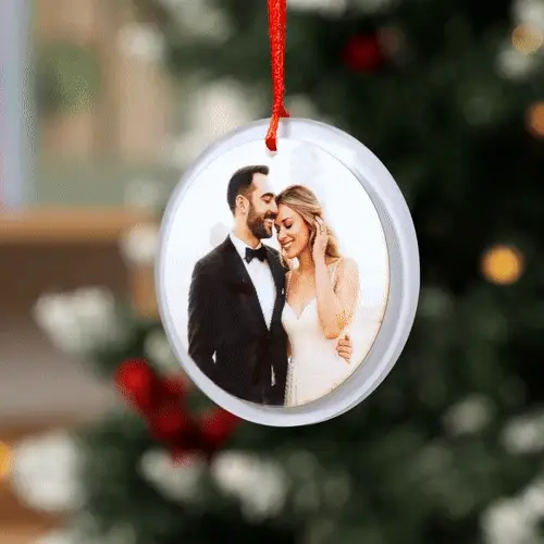 Custom Photo Lenticular Crystal Ornament - Personalized Anniversary Christmas Wedding Gifts For Husband And Wife, Him And Her - Merry & Mine
