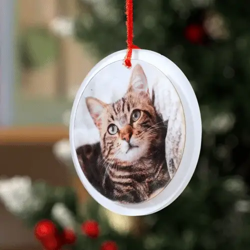 Custom Photo Ceramic Ornament - Personalized Christmas Birthday Gifts For Dog Cat Lovers, Dog Dad And Mom, Cat Owners - Life Feels Better Furry