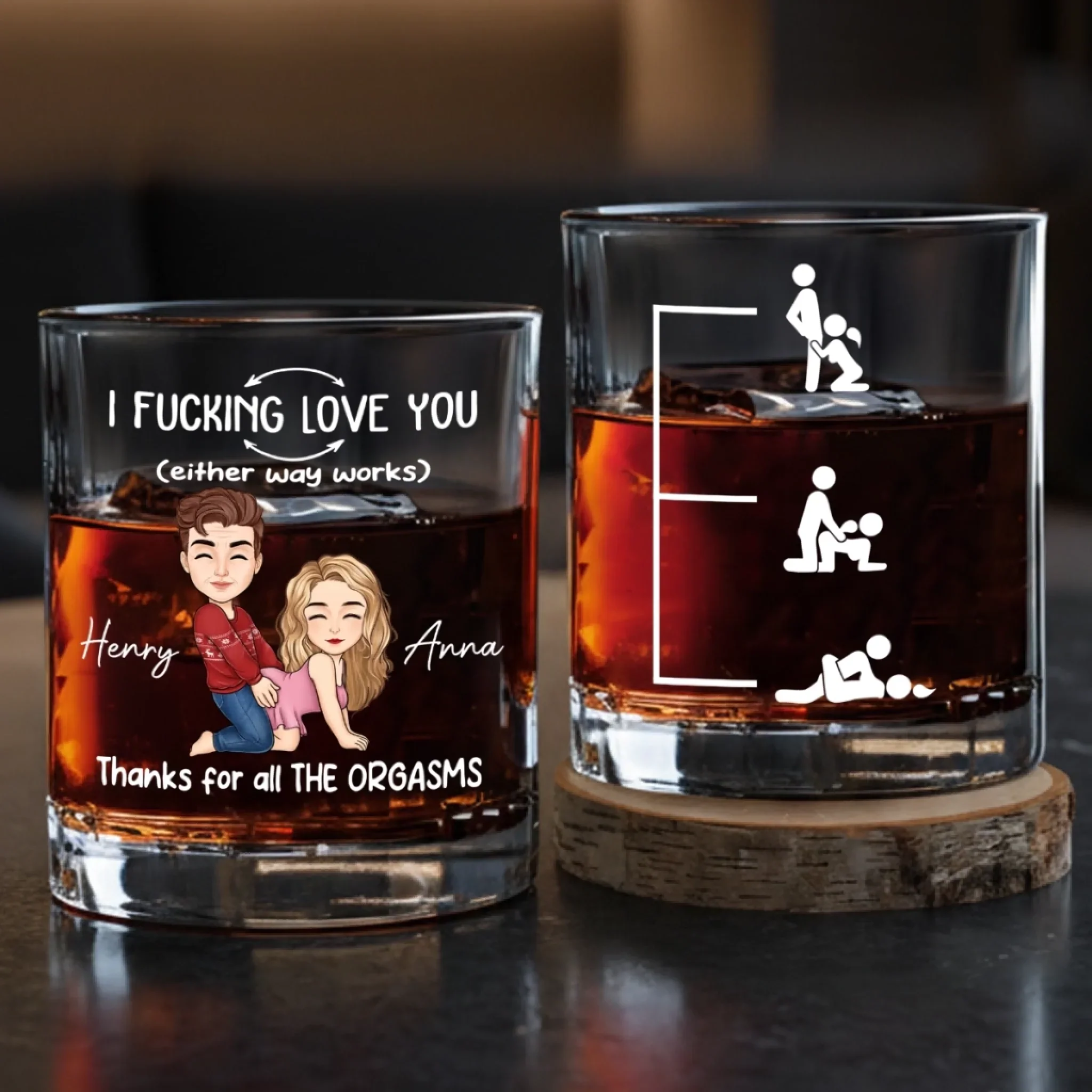 Custom Whiskey Glass - Personalized Anniversary Christmas Wedding Gifts For Husband And Wife, Him And Her - For Lovers Who Laugh, Flirt And Pour Again