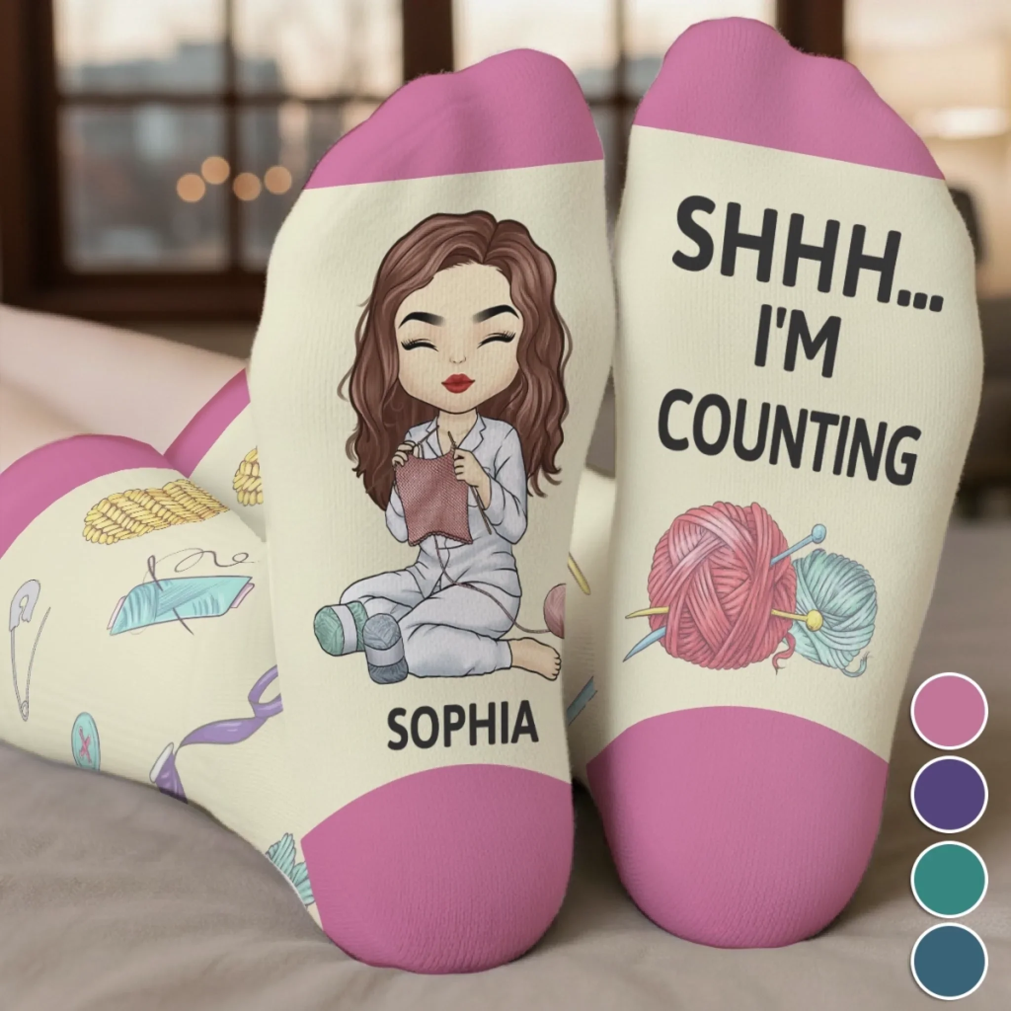 Custom Yarn Crew Socks - Personalized Birthday Gifts For Crochet Knitting Lovers, Crocheters, Knitters - Hooked On Crochet