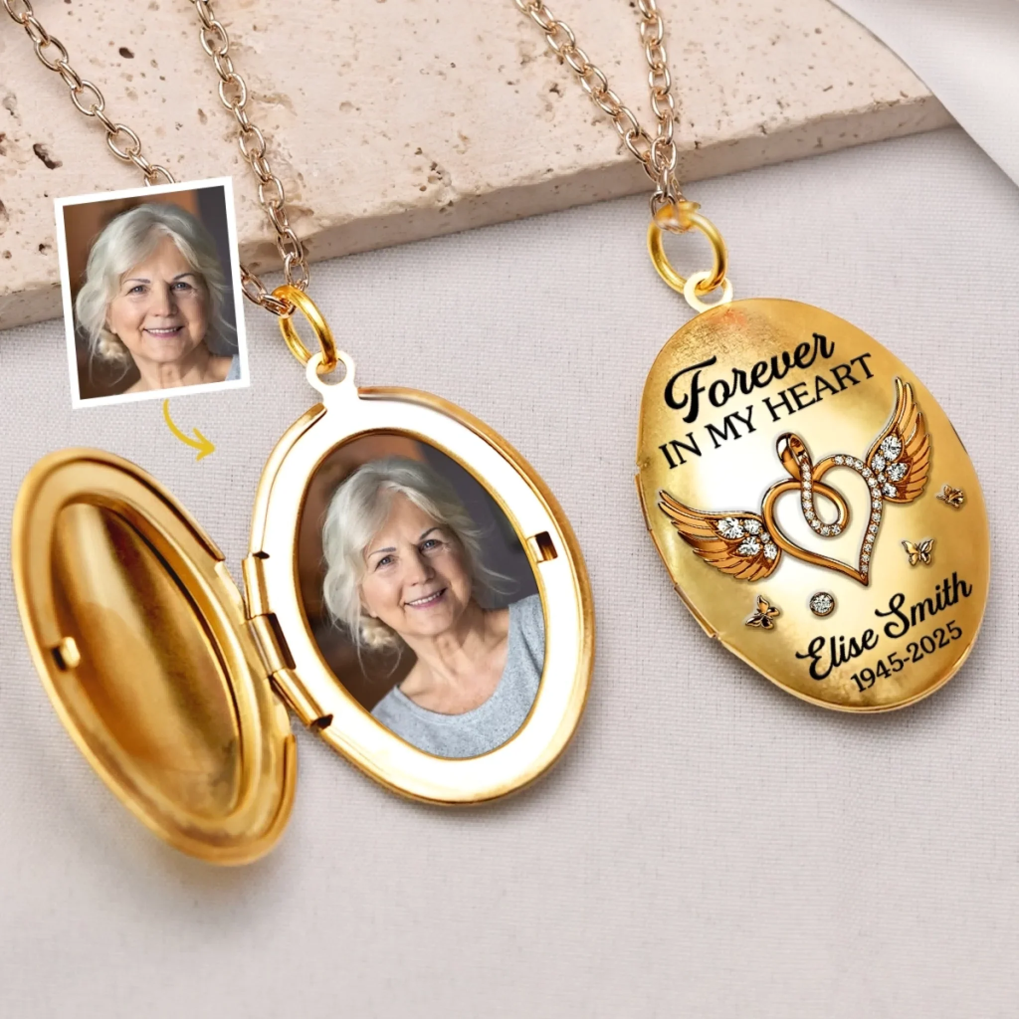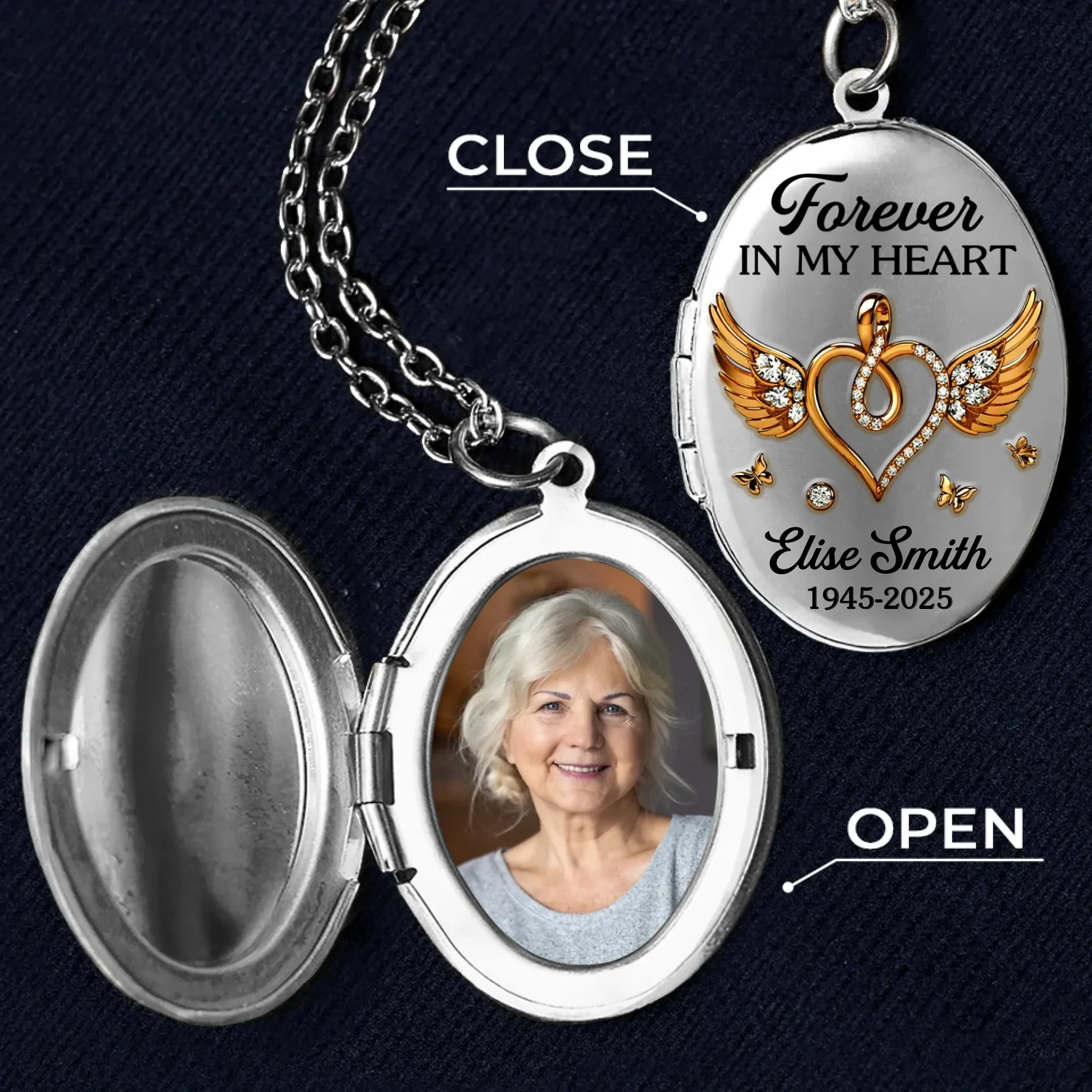 Custom Photo Locket Necklace - Personalized Memorial Sympathy Gifts For Loss Of Mom, Dad - Forever In Our Hearts