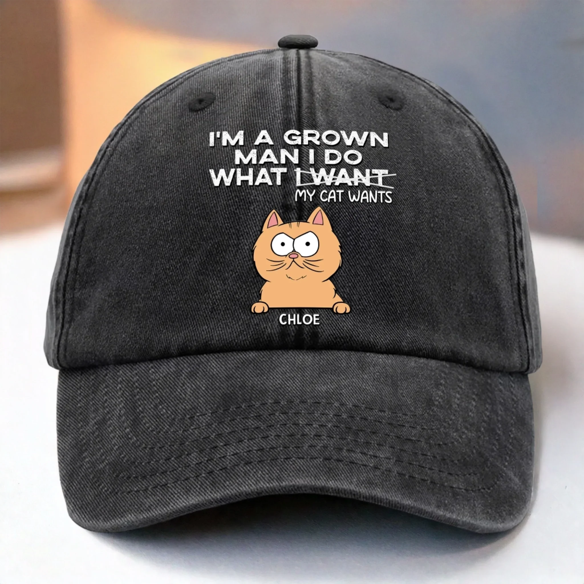 Custom Vintage Washed Denim Baseball Cap - Personalized Birthday Gifts For Cat Lovers, Cat Mom And Dad - Certified Cat Dad