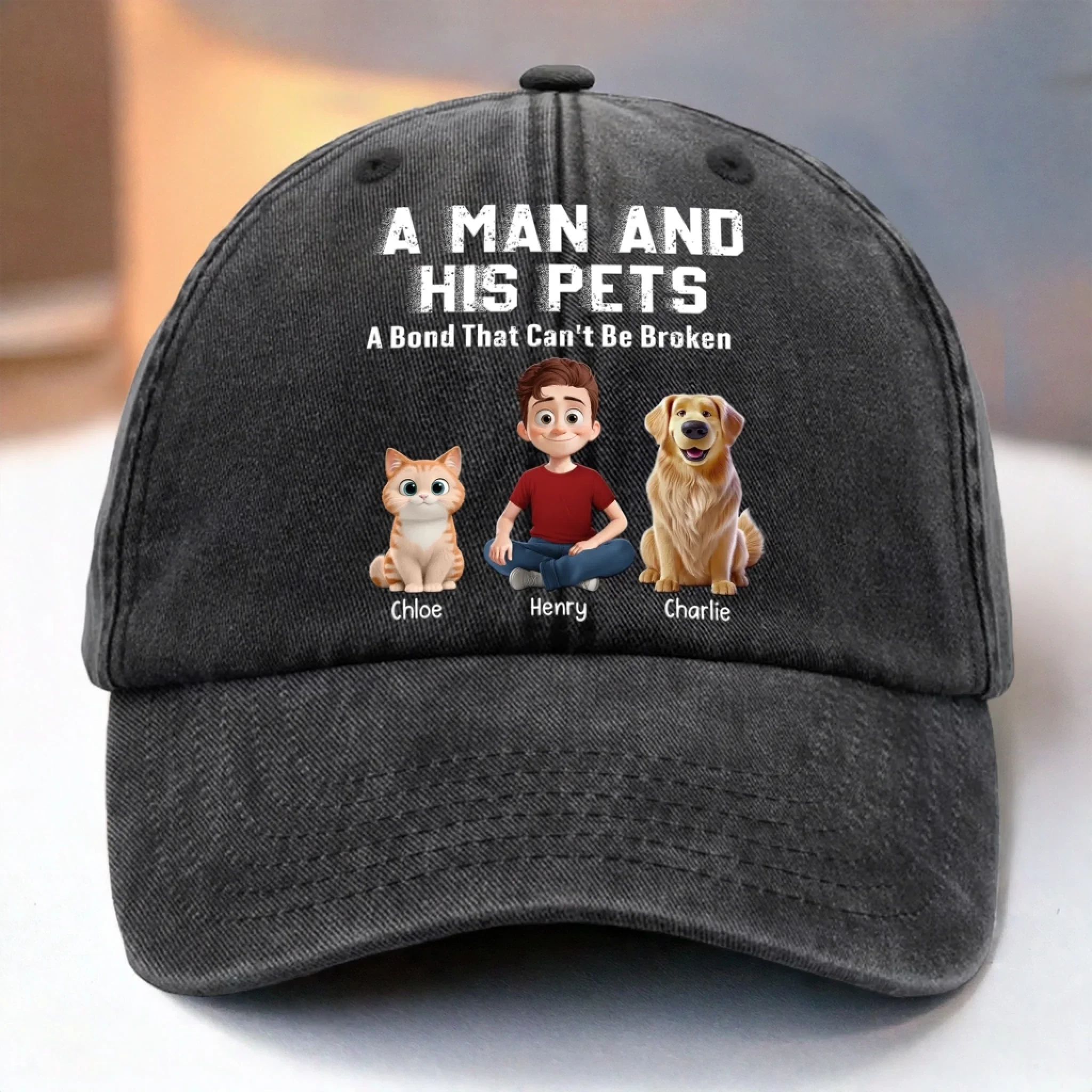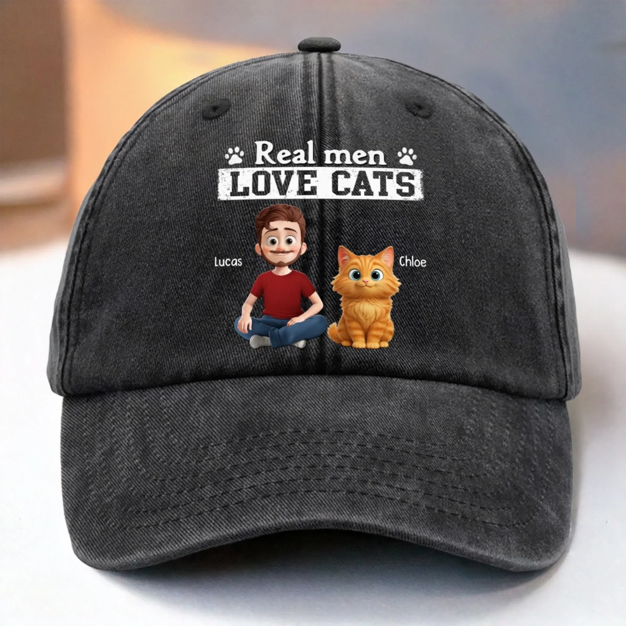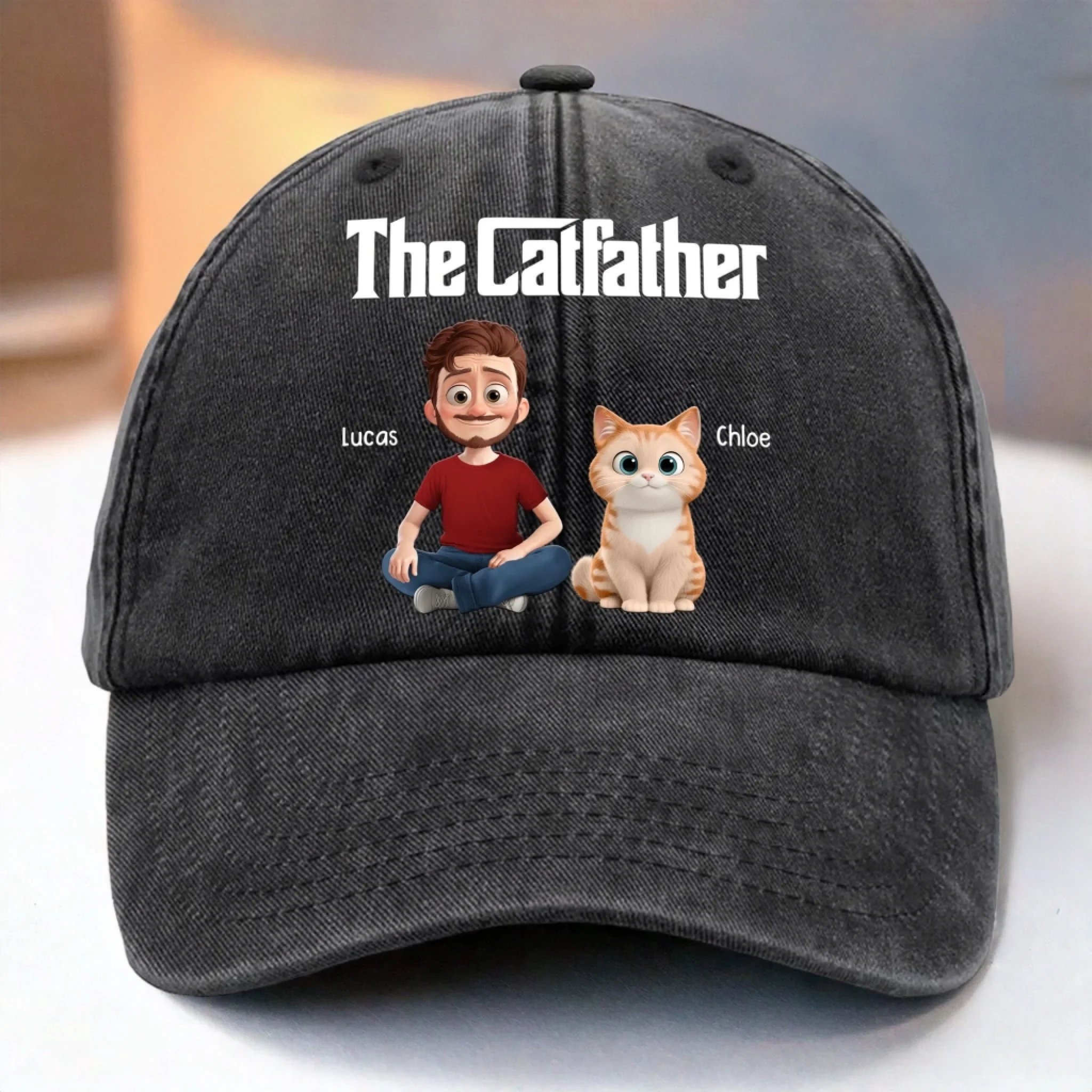 Custom Vintage Washed Denim Baseball Cap - Personalized Birthday Gifts For Cat Lovers, Cat Mom And Dad - My Daily Happiness Source
