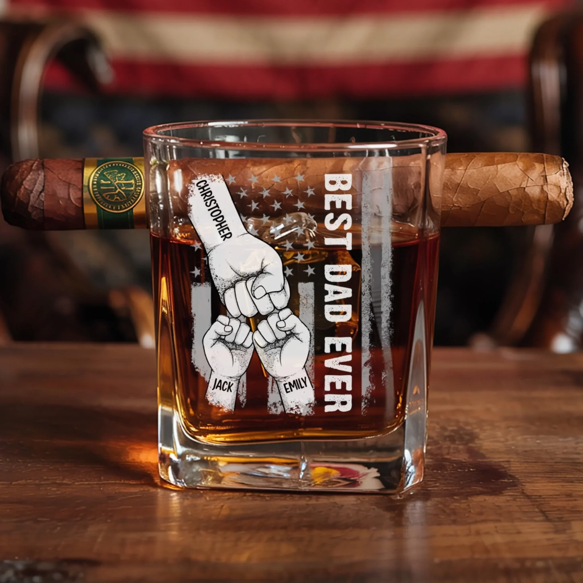 Certified Awesome Dad - Family Personalized Custom Whiskey Glass With Cigarette Holder - Father's Day, Gift For Dad, Grandpa