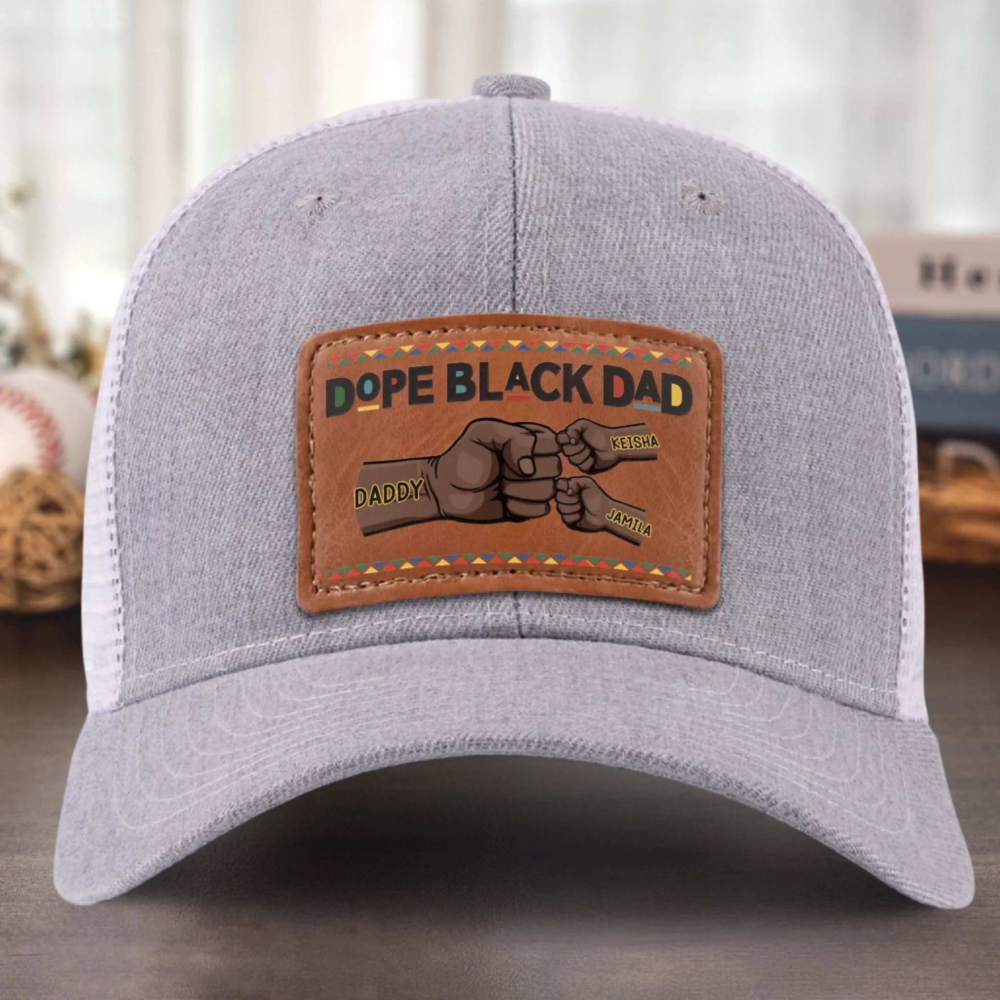 Dope Black Dad, Everyday Hero - Family Personalized Custom Leather Patch Hat - Father's Day, Gift For Dad
