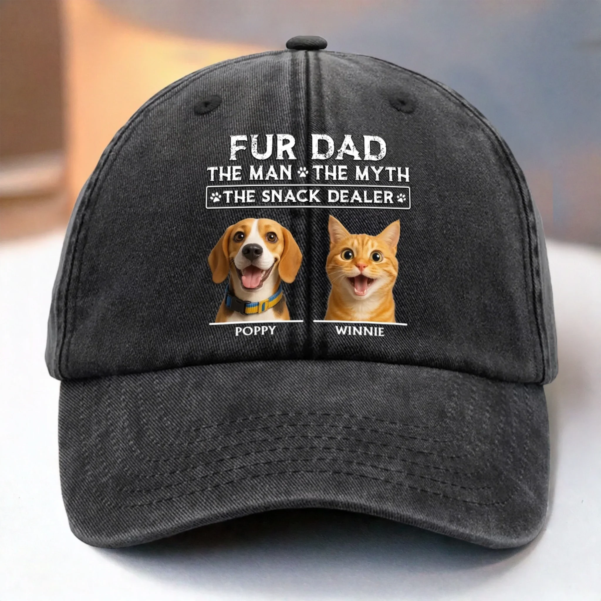 Best Hugs Come With Fur - Dog & Cat Personalized Custom Vintage Washed Denim Baseball Cap - Father's Day, Gift For Dad, Pet Owners, Pet Lovers