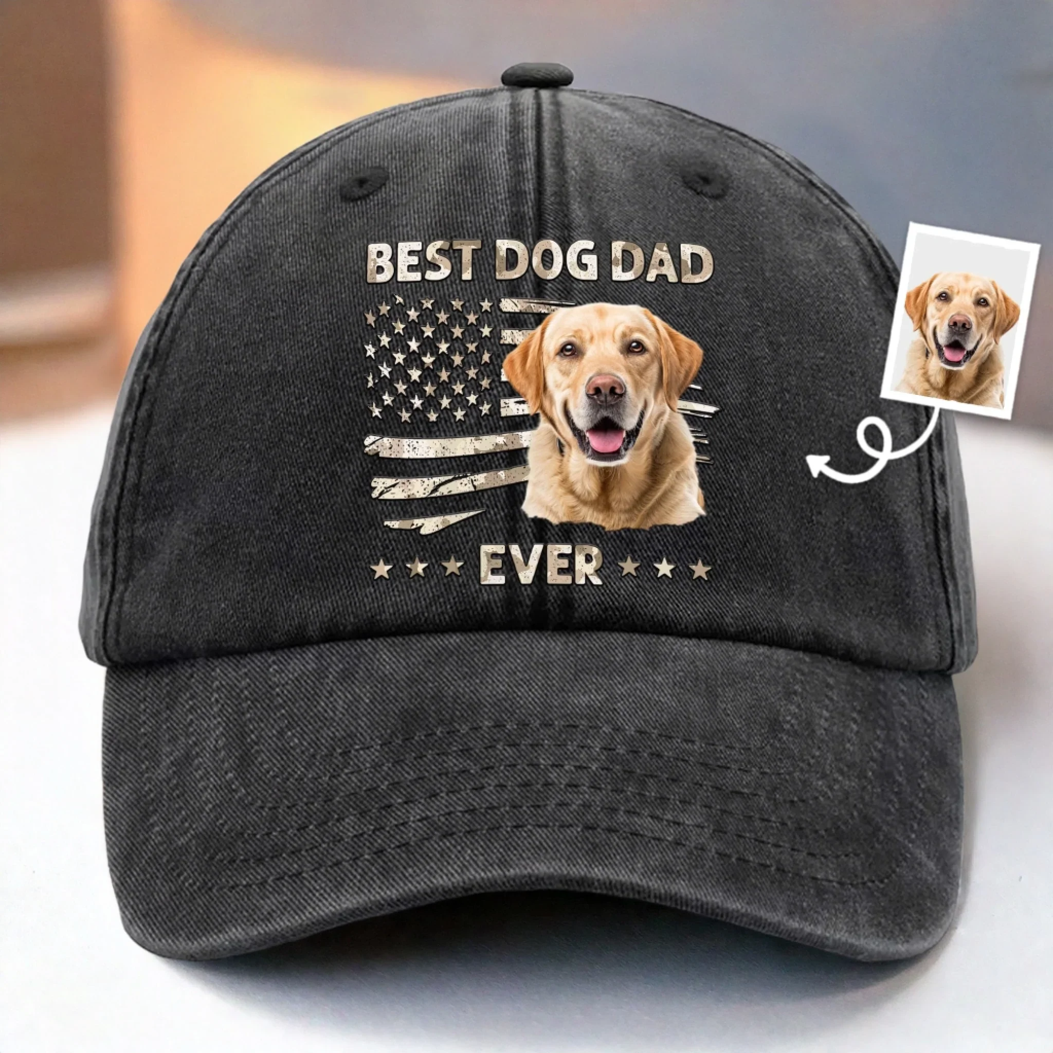 Custom Photo Leader Of The Pack - Dog & Cat Personalized Custom Vintage Washed Denim Baseball Cap - Father's Day, Gift For Dad, Pet Owners, Pet Lovers