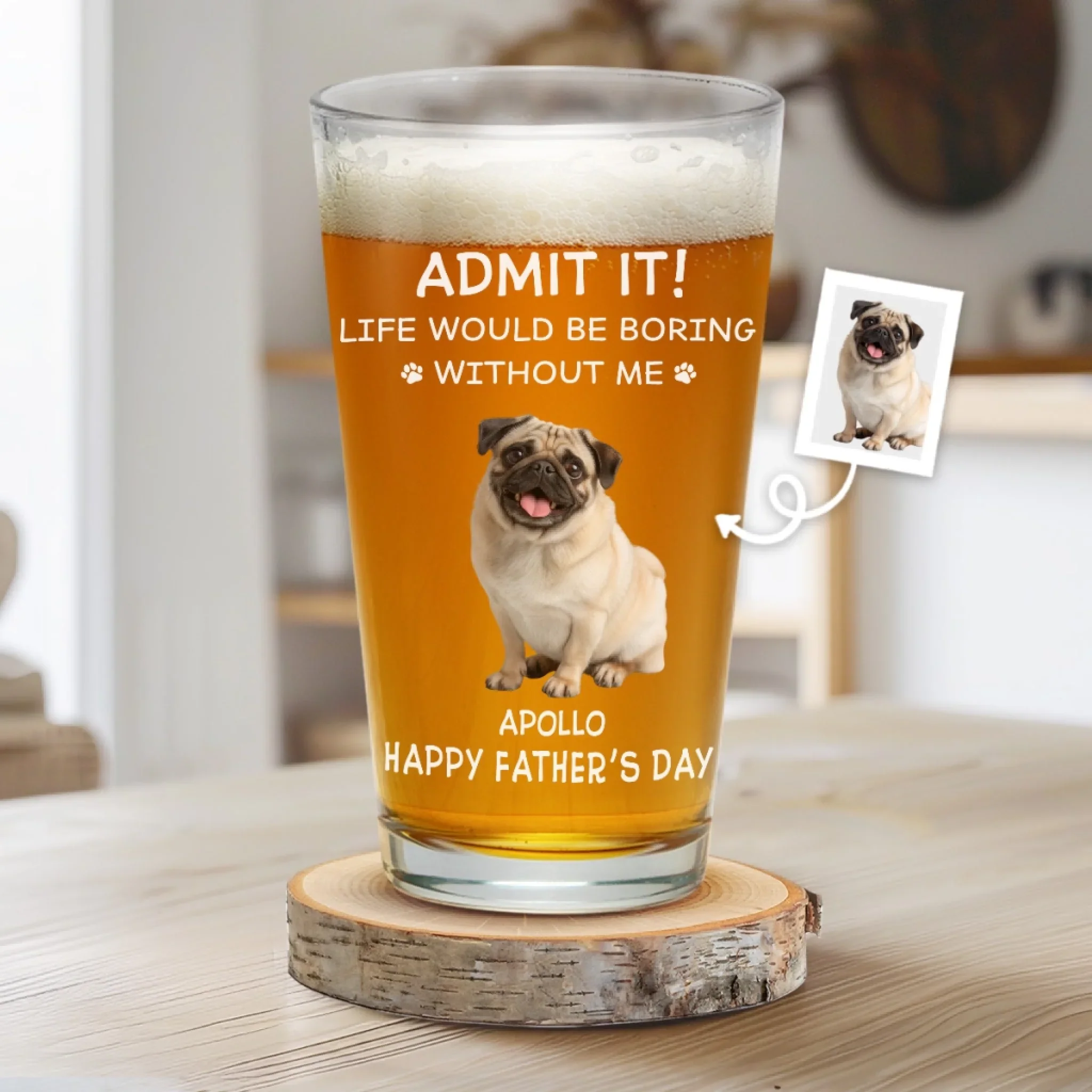Custom Photo Pet Me, Feed Me, Love Me - Dog & Cat Personalized Custom Beer Glass - Father's Day, Gift For Pet Owners, Pet Lovers