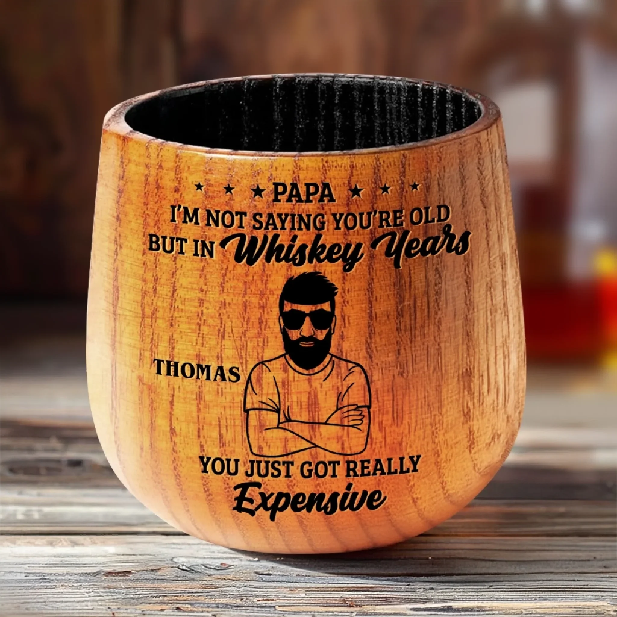 Aged Whiskey, Vintage Dad Jokes Included - Family Personalized Custom Wooden Whiskey Glass - Father's Day, Gift For Dad, Grandpa