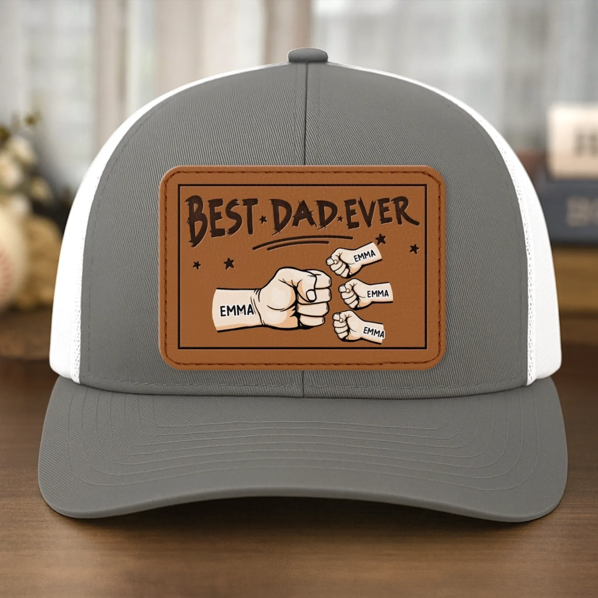 In Papa s Grip, We Feel Safe - Family Personalized Custom Leather Patch Snapback - Father's Day, Gift For Dad, Grandpa