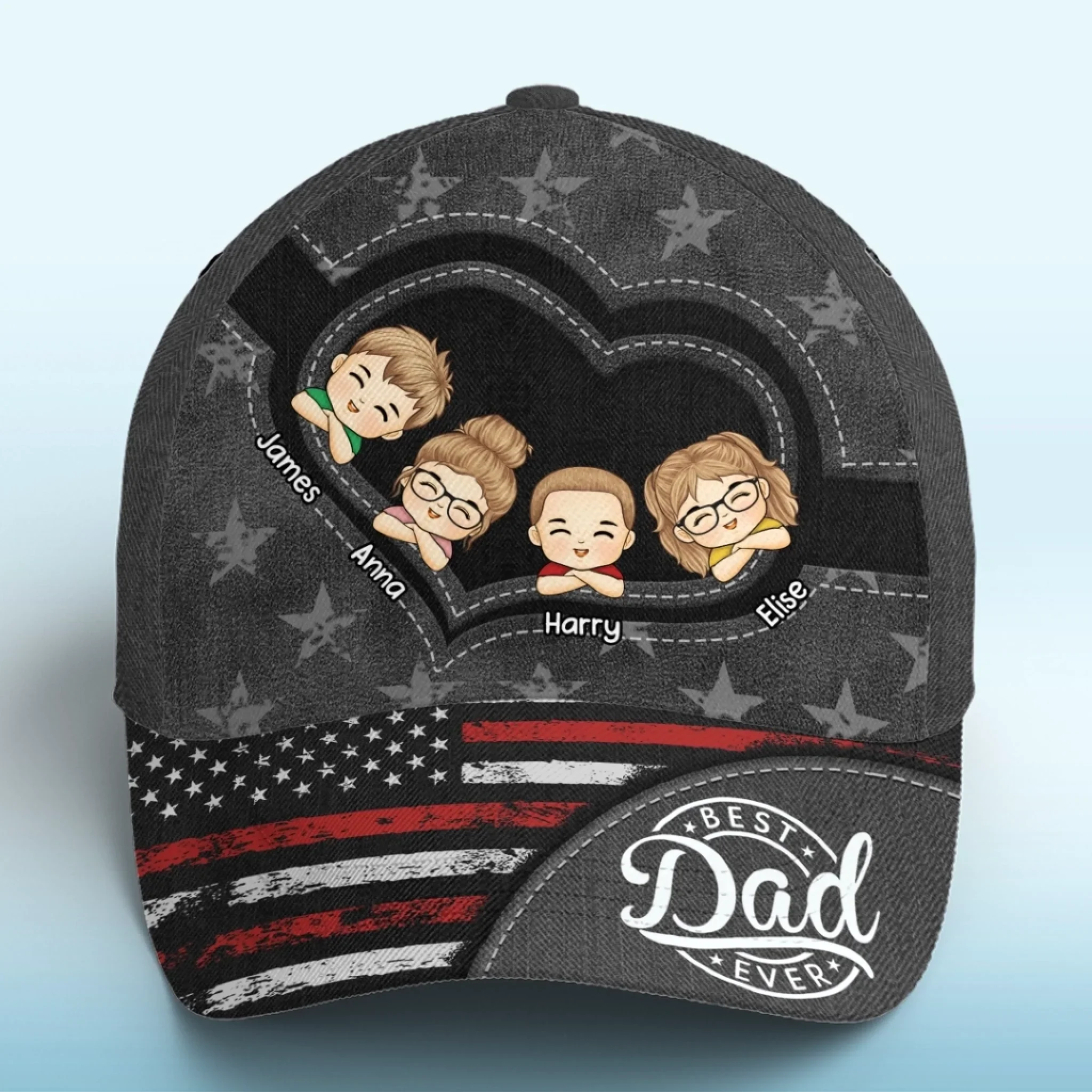 Wearing My World Close To My Heart - Family Personalized Custom Hat, All Over Print Classic Cap - Father's Day, Gift For Dad, Grandpa
