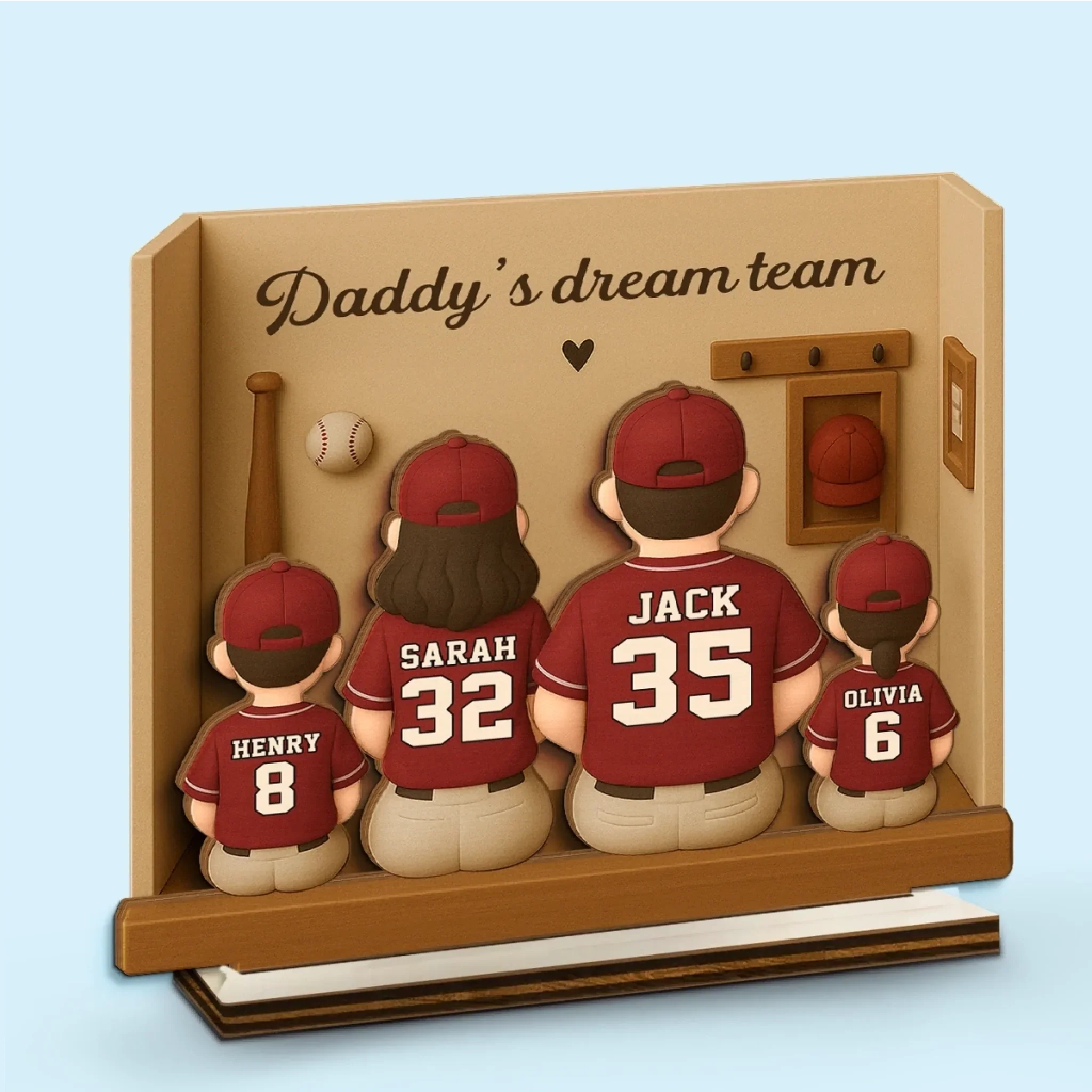 Dad s All-Star Squad - Family Personalized Custom Shaped 2-Layered Wooden Plaque With Flat Stand - Father's Day, Gift For Dad, Sport Lovers, Sport Players