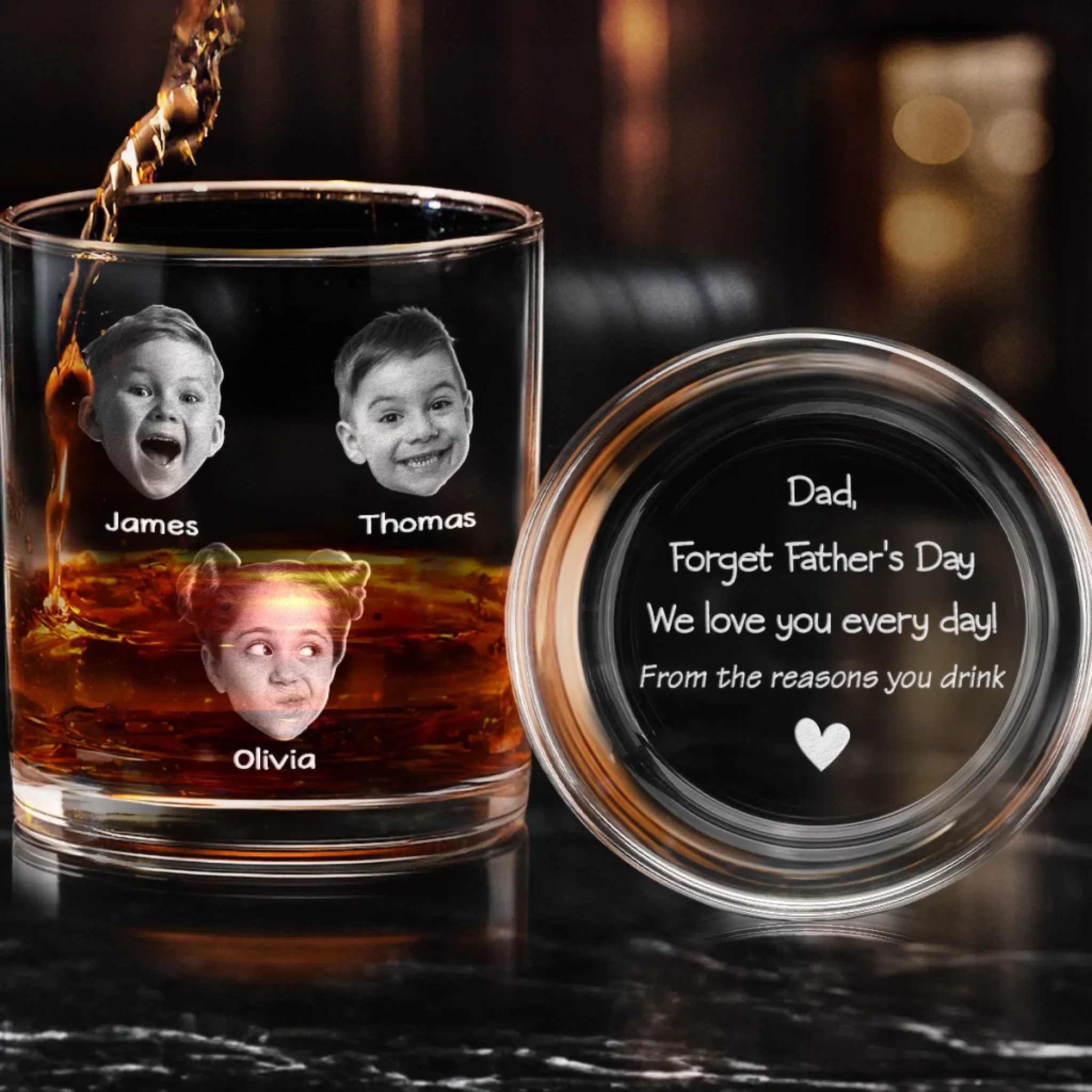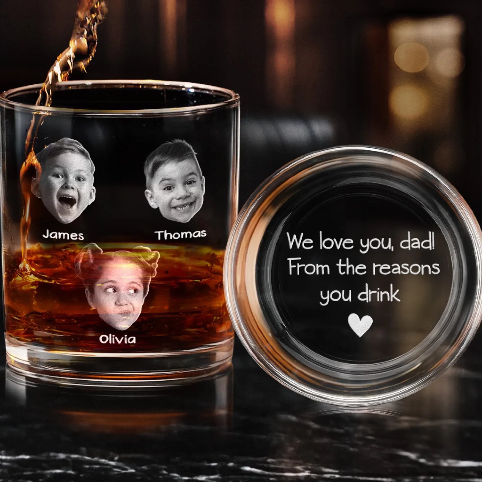 Custom Photo From Your Troublemakers - Family Personalized Custom Whiskey Glass With Bottom And Side Engraving - Father's Day, Gift For Dad, Grandpa
