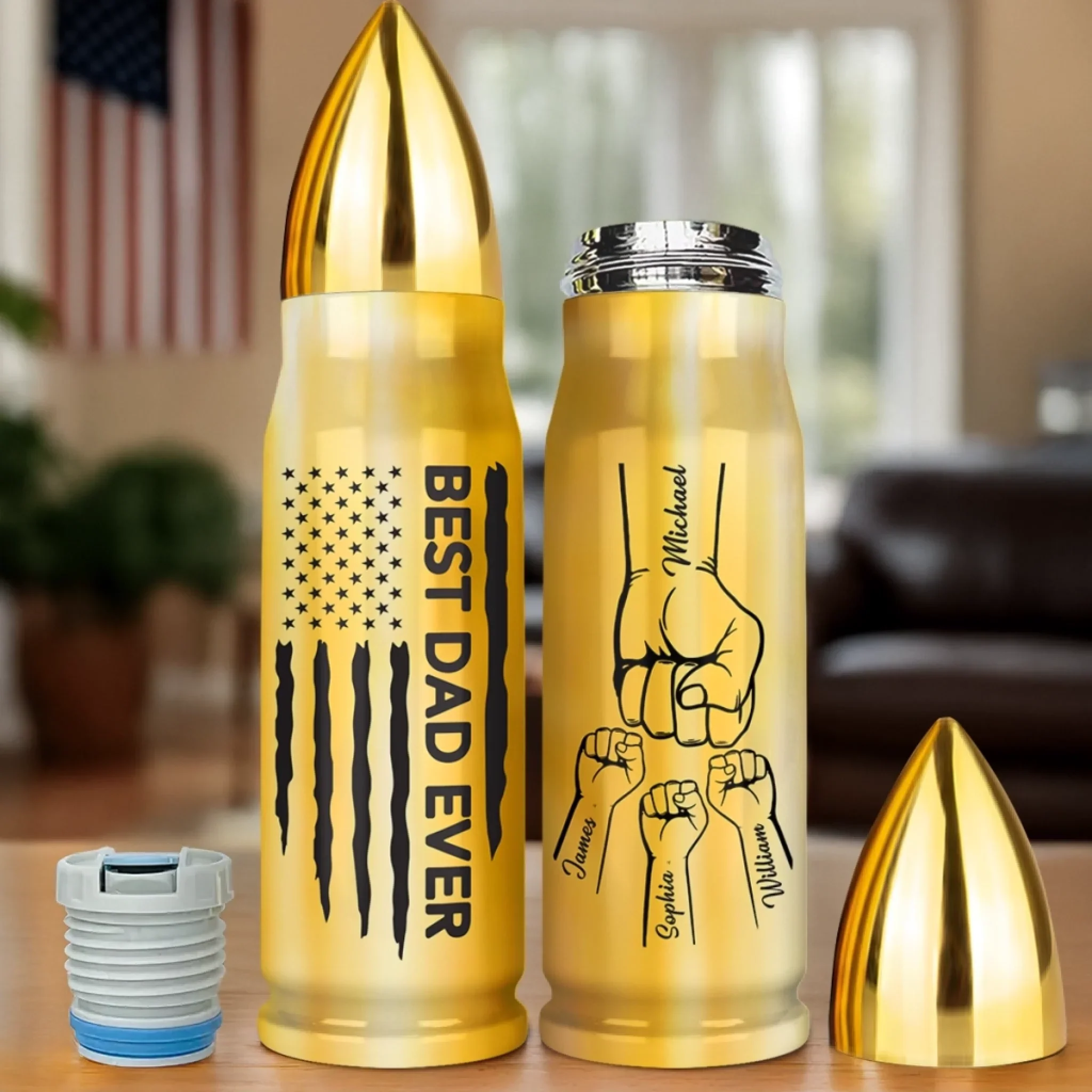 Fist Bumps Forever Squad - Family Personalized Custom Bullet Tumbler - Father's Day, Gift For Dad, Grandpa