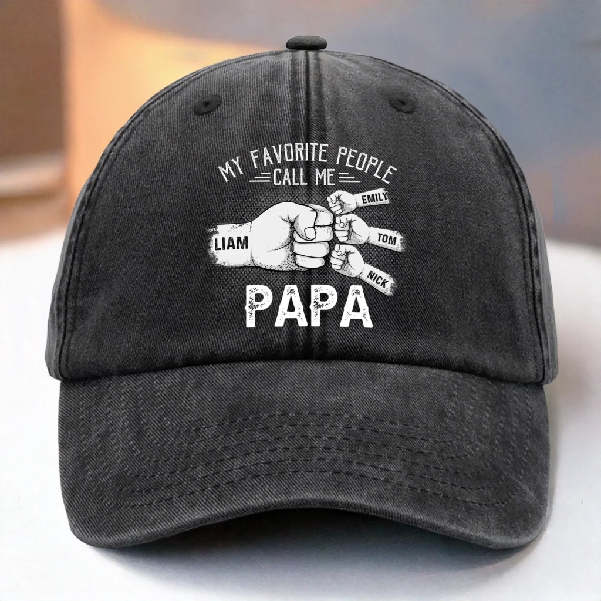 Papa s Love, Wrapped Around Our Little Hands - Family Personalized Custom Vintage Washed Denim Baseball Cap - Father's Day, Gift For Dad, Grandpa