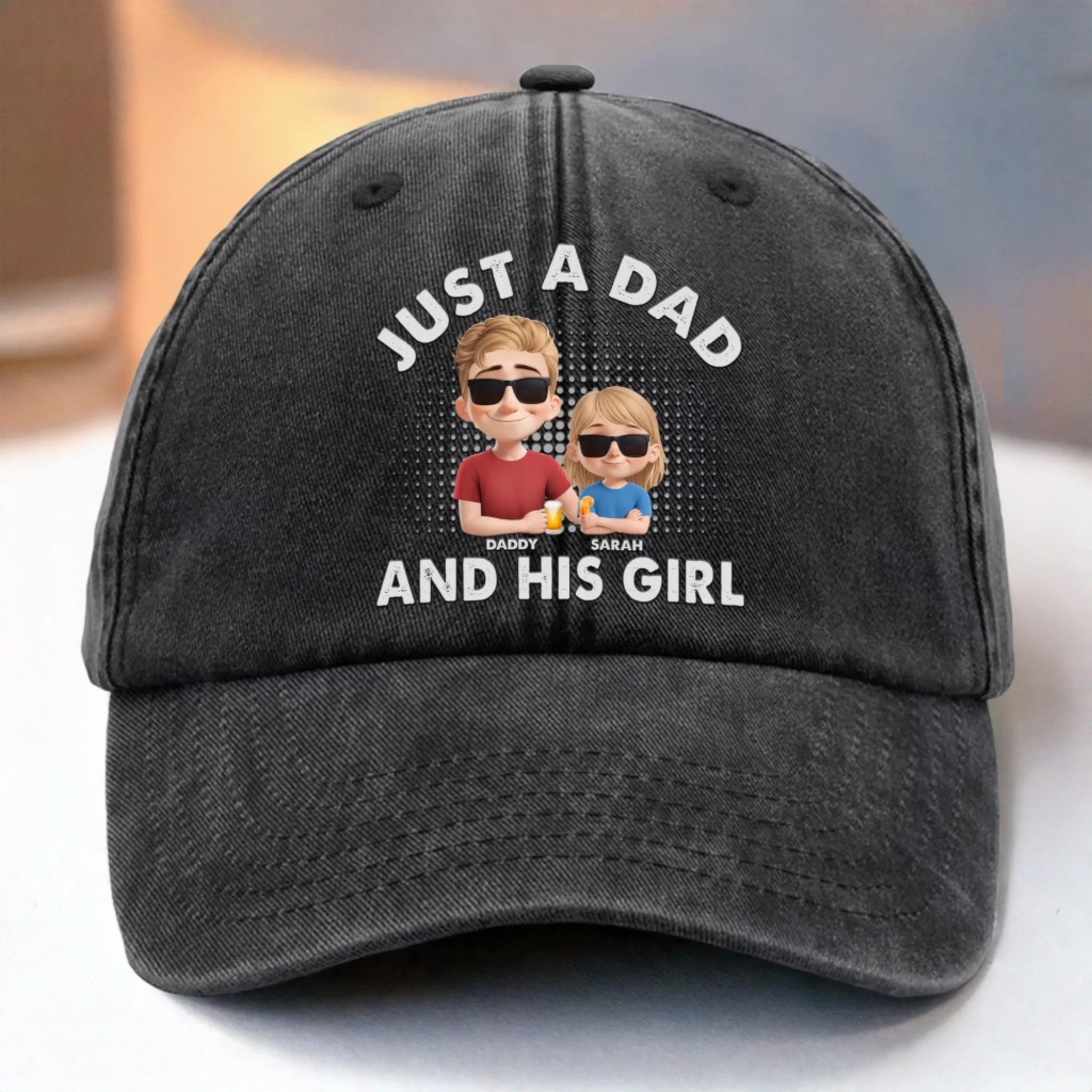 Cool Dad, Cooler Daughter - Family Personalized Custom Vintage Washed Denim Baseball Cap - Father's Day, Gift For Dad
