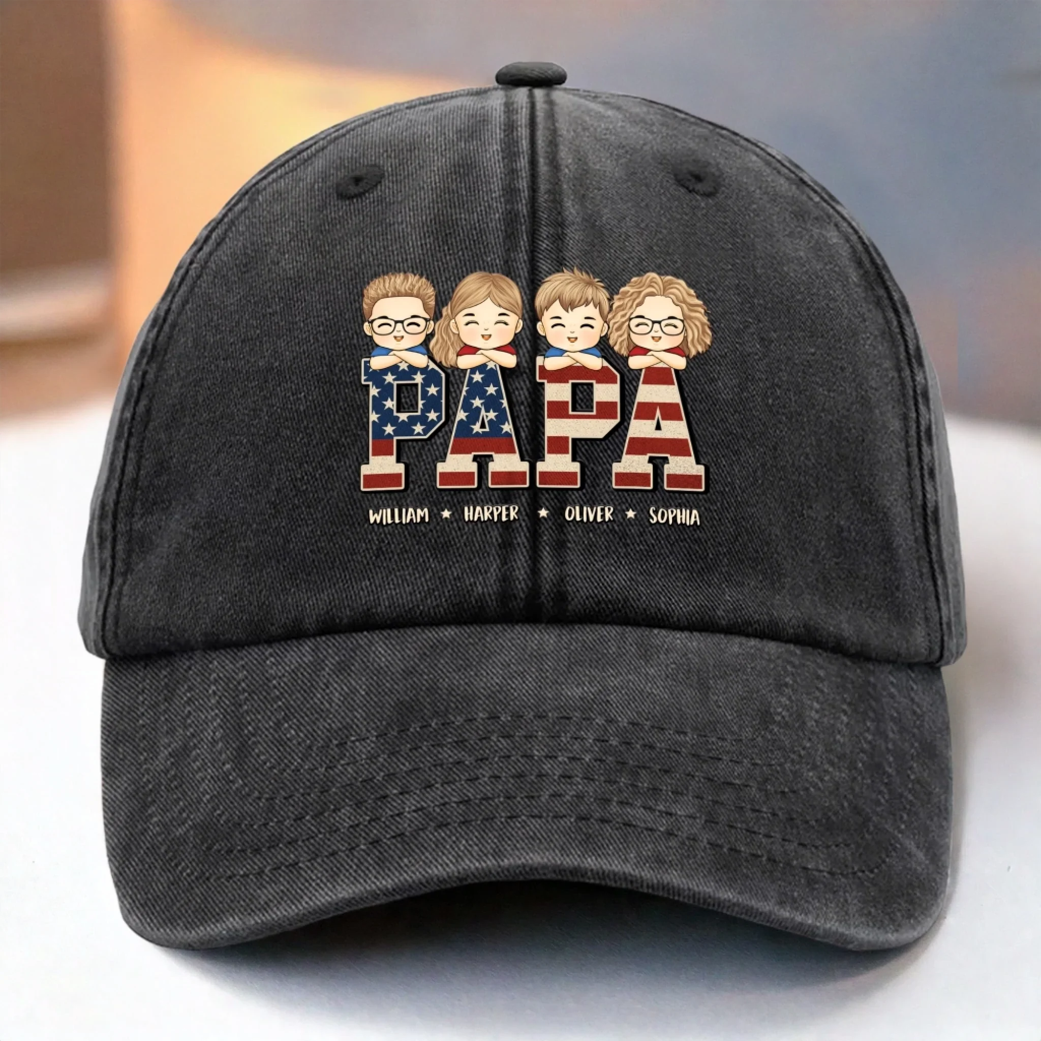 All Love, All Papa - Family Personalized Custom Vintage Washed Denim Baseball Cap - Father's Day, Gift For Dad