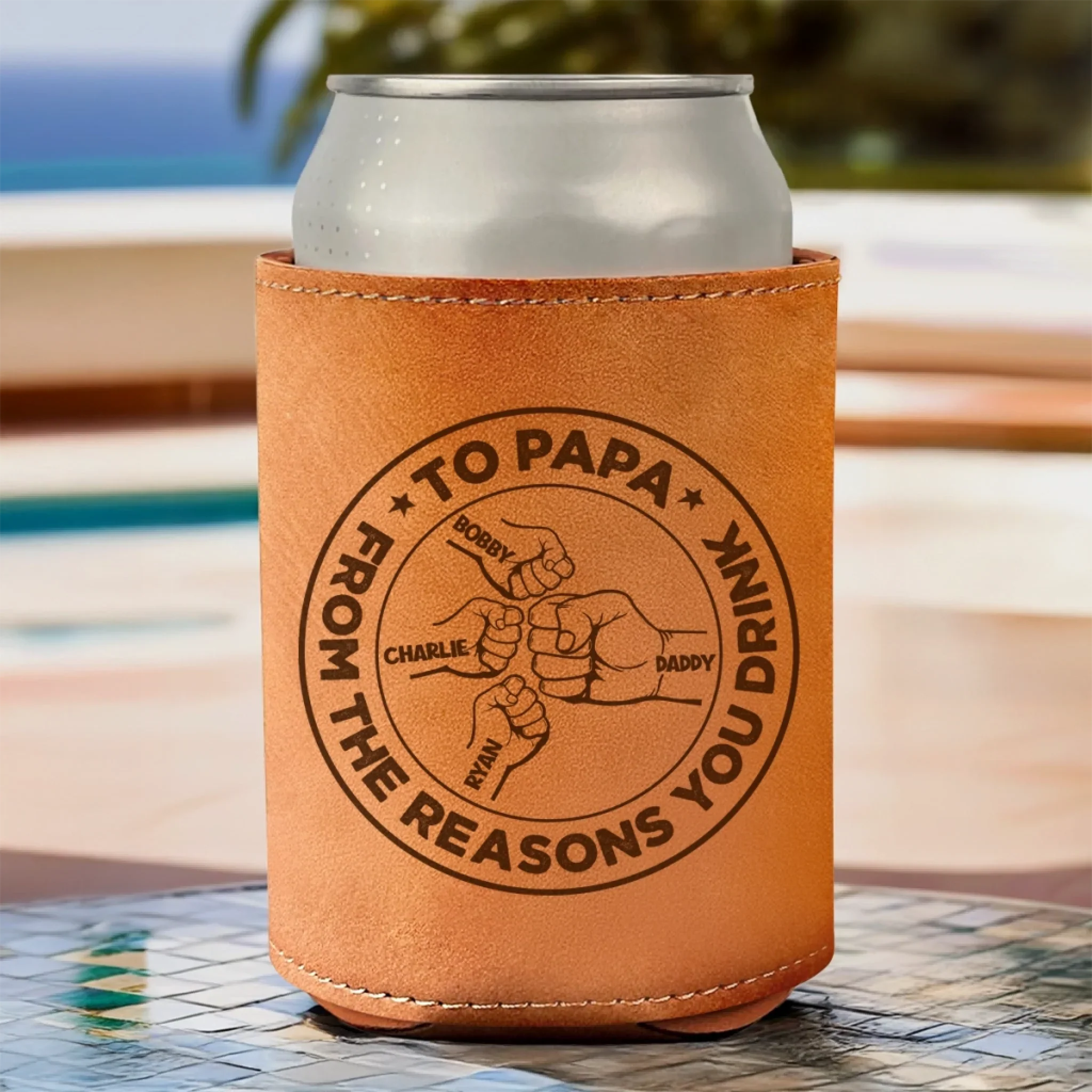 Thanks For Loving Us Anyway - Family Personalized Custom Leather Can Cooler - Father's Day, Gift For Dad, Grandpa