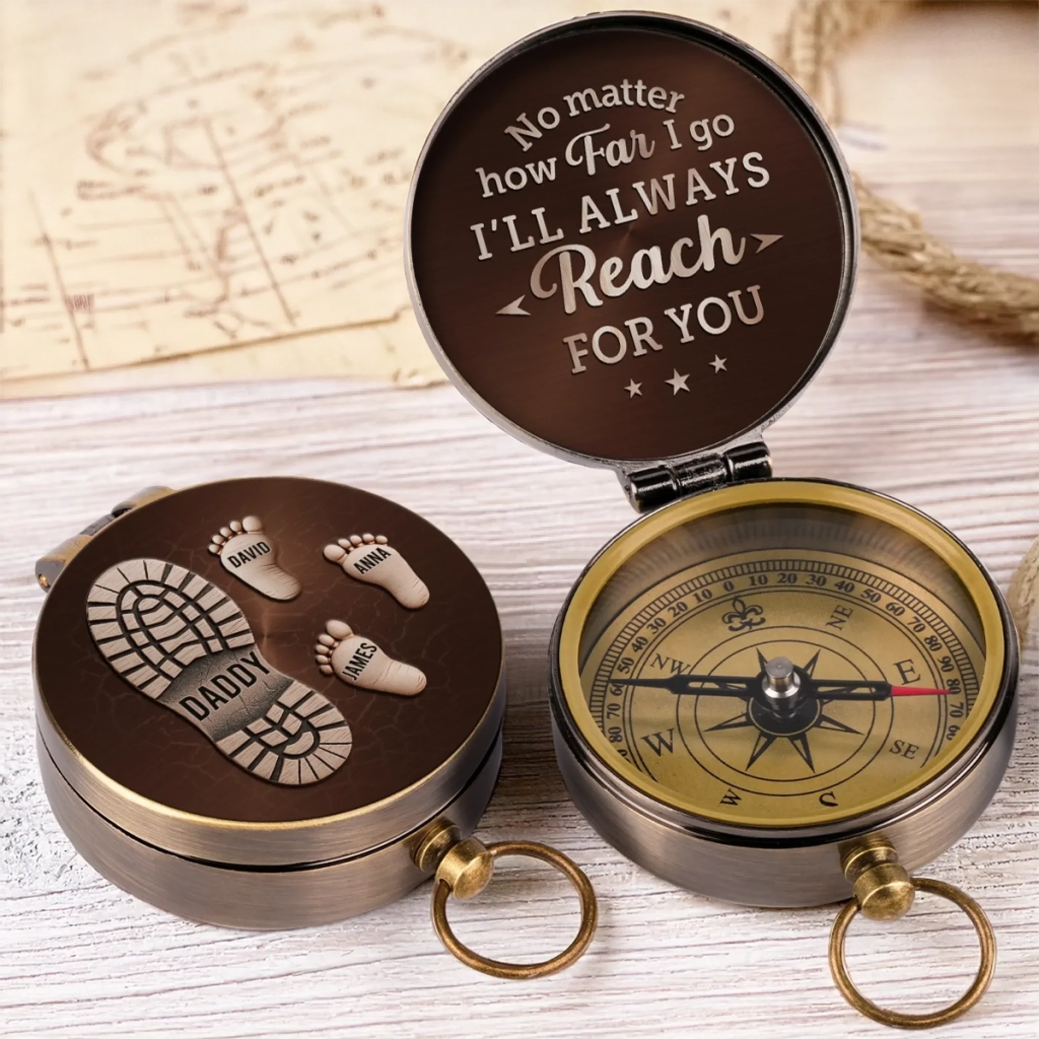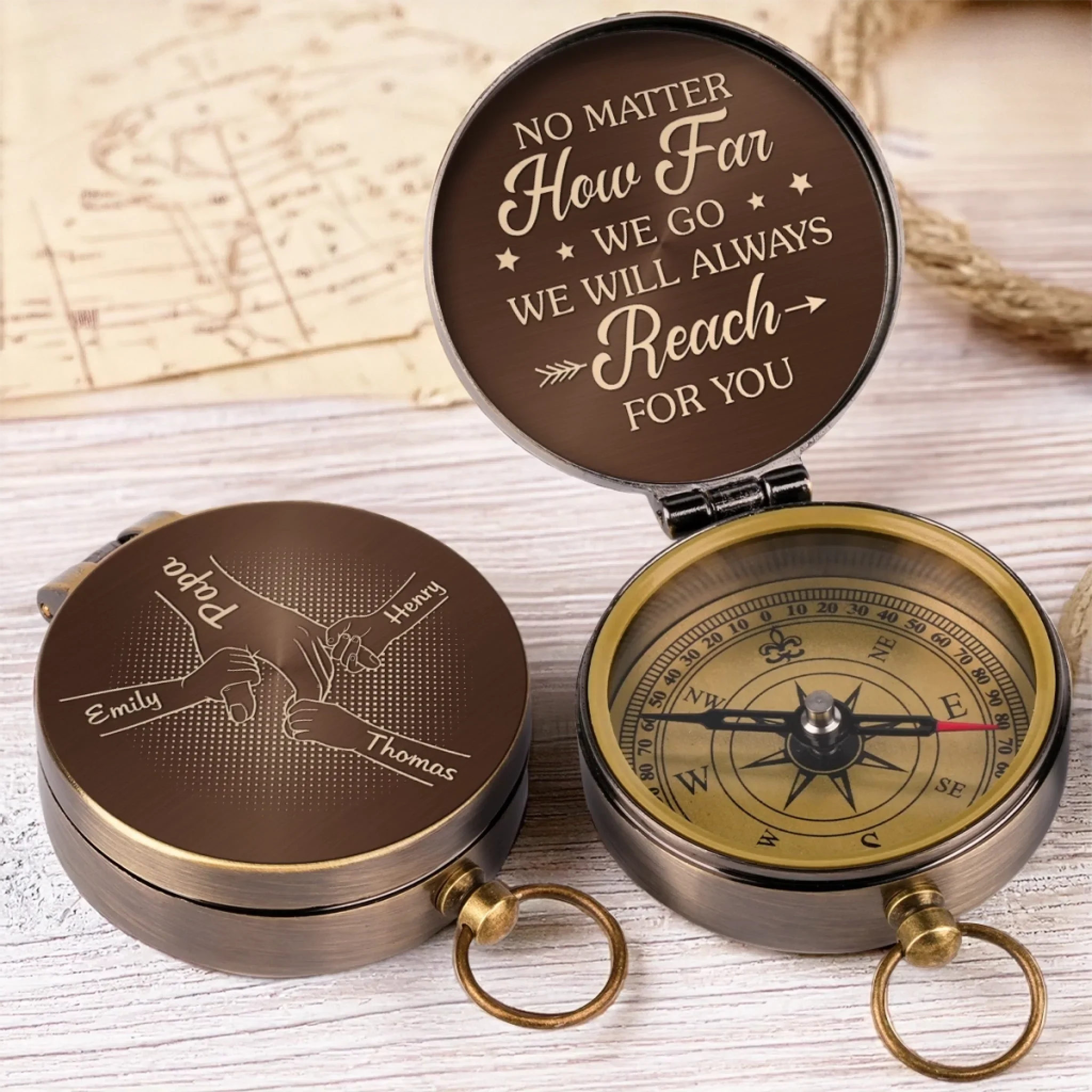 Our Journey Starts With You - Family Personalized Custom Compass - Father's Day, Gift For Dad, Grandpa