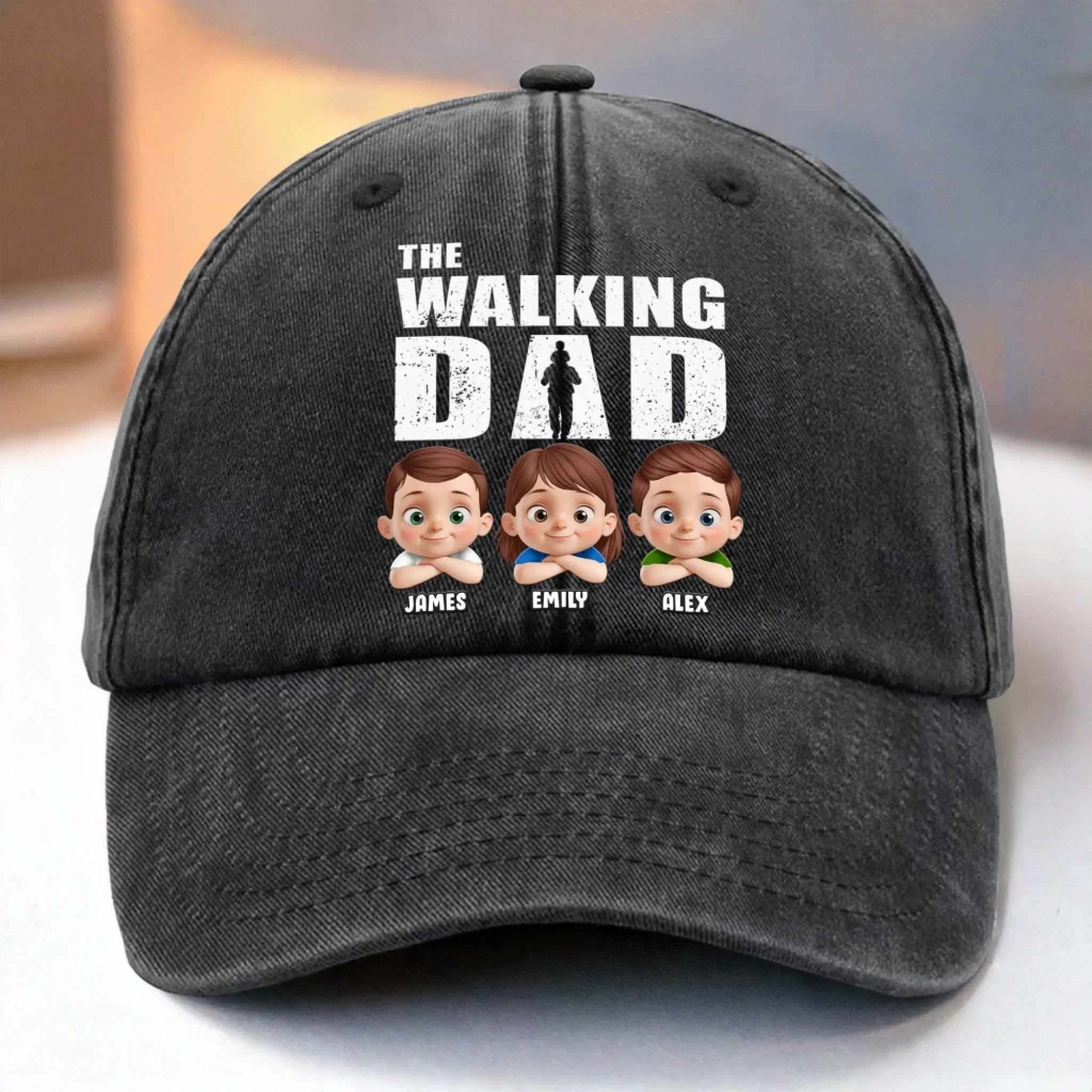 The Stroll Is Real - Family Personalized Custom Vintage Washed Denim Baseball Cap - Father's Day, Gift For Dad