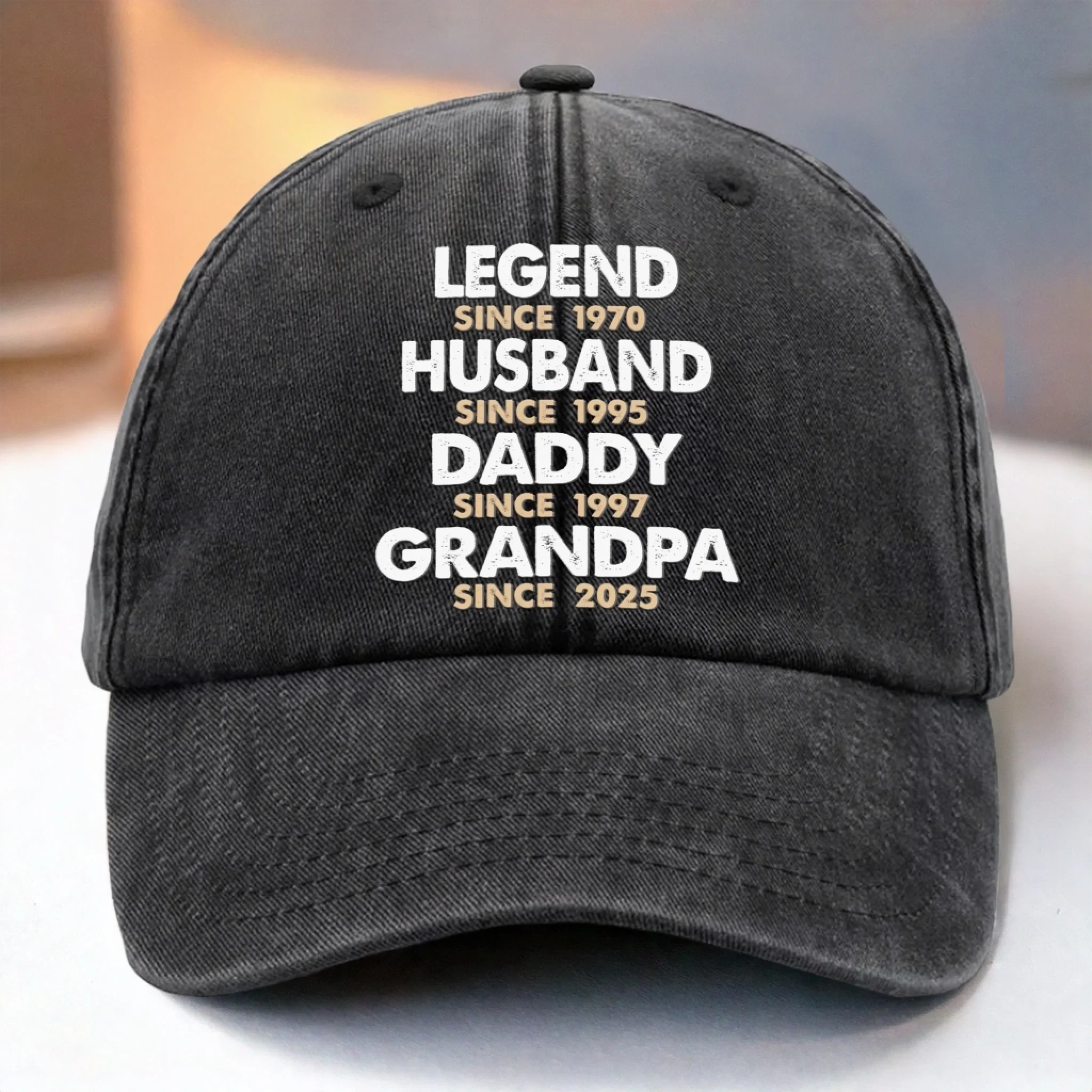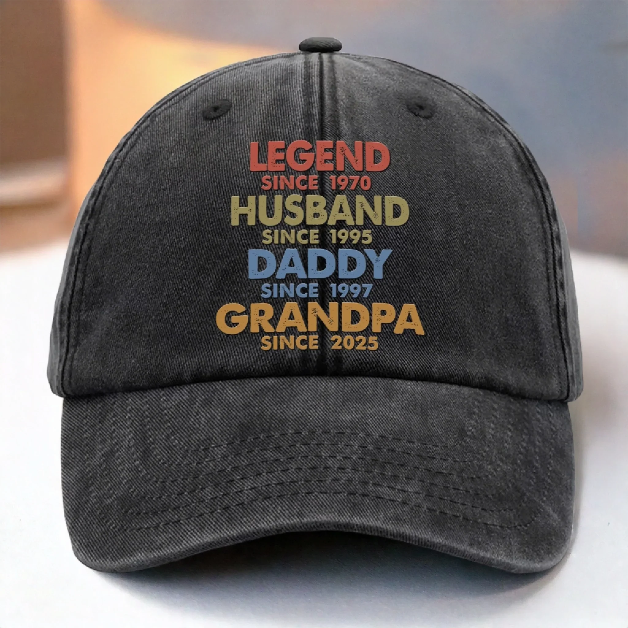 Built To Be A Legend - Family Personalized Custom Vintage Washed Denim Baseball Cap - Father's Day, Gift For Dad, Grandpa