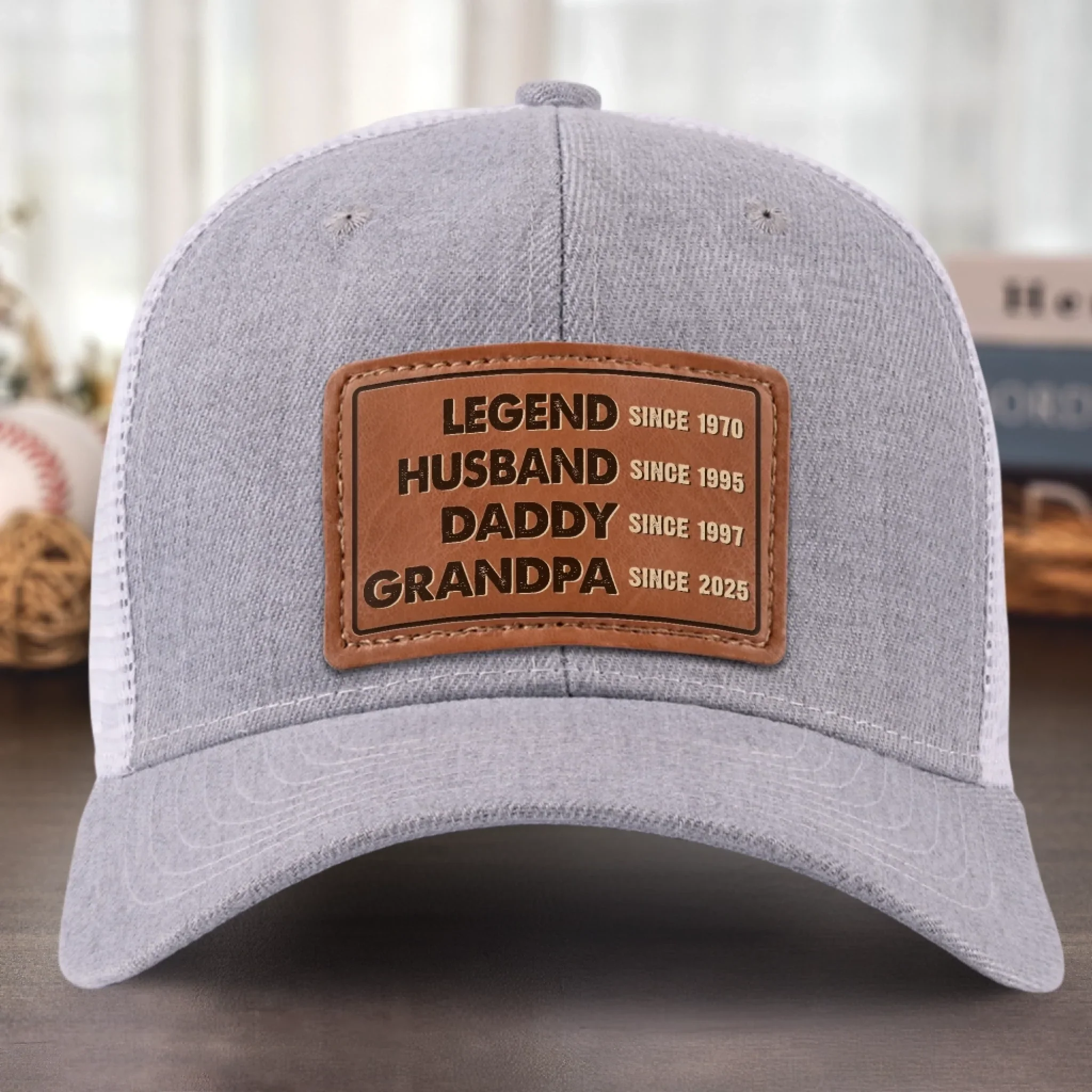 The Man, The Myth, The Generational Icon - Family Personalized Custom Leather Patch Hat - Father's Day, Gift For Dad, Grandpa