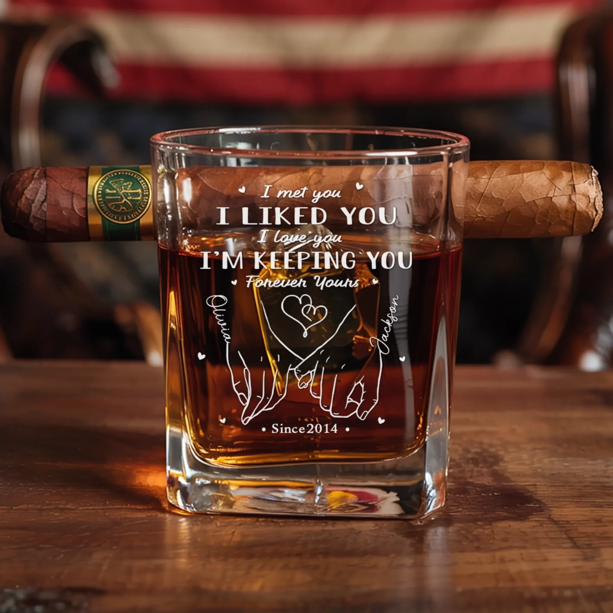 You Hold My Heart - Couple Personalized Custom Whiskey Glass With Cigarette Holder - Gift For Husband Wife, Anniversary