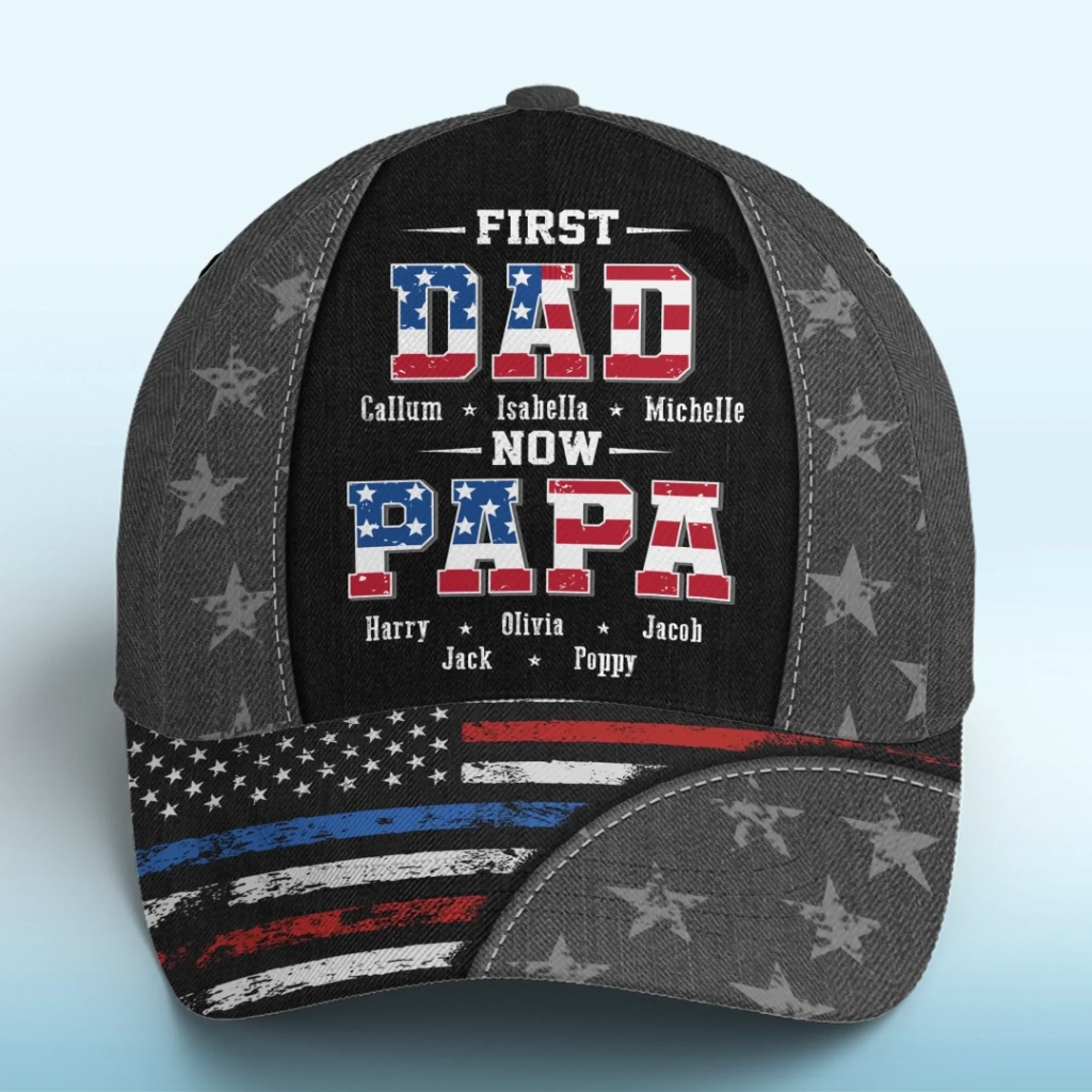 First Dad, Now Grandpa - Family Personalized Custom Hat, All Over Print Classic Cap - Father's Day, Gift For Dad, Grandpa