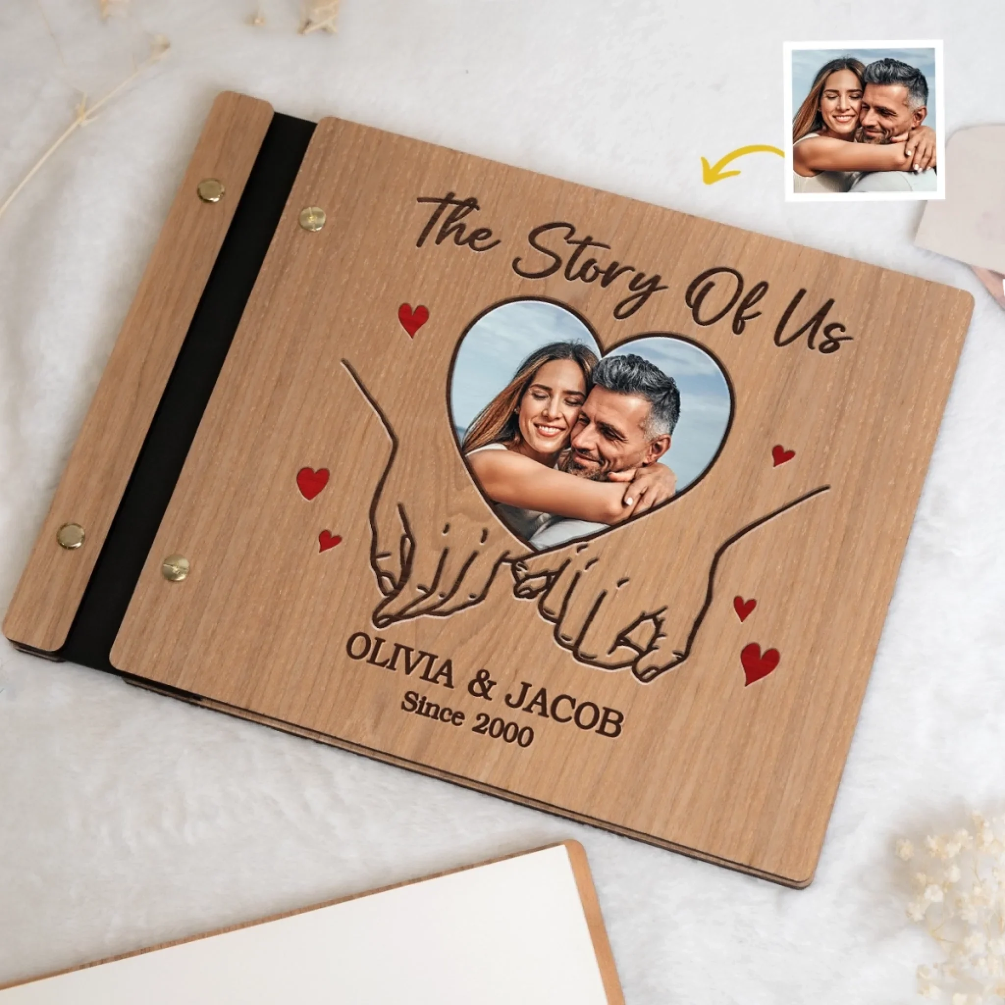 Custom Photo The Story Of Us - Couple Personalized Custom Wooden Scrapbook - Gift For Husband Wife, Anniversary