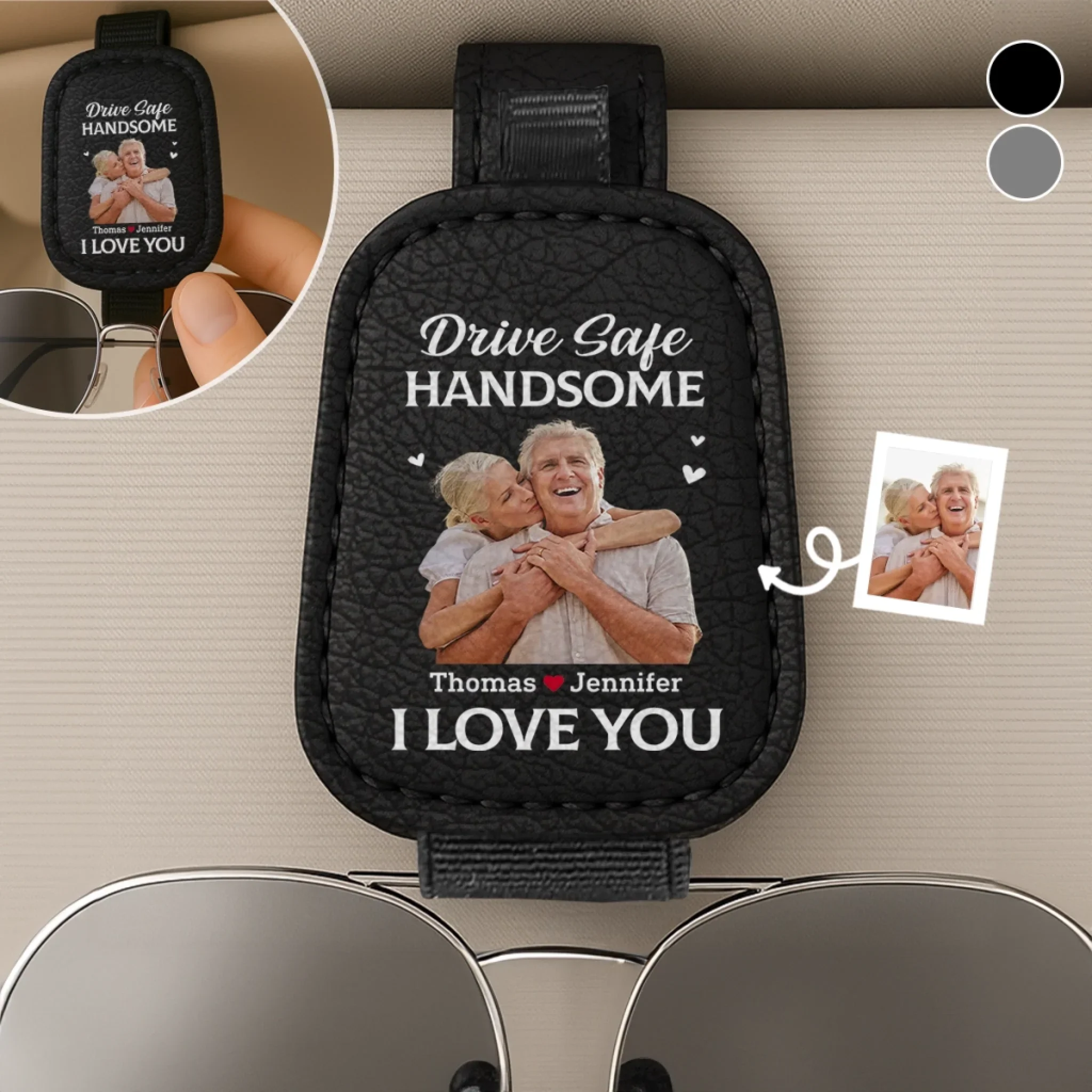 Custom Photo A Piece Of My Heart Rides With You - Couple Personalized Custom Leather Car Visor - Gift For Husband Wife, Anniversary