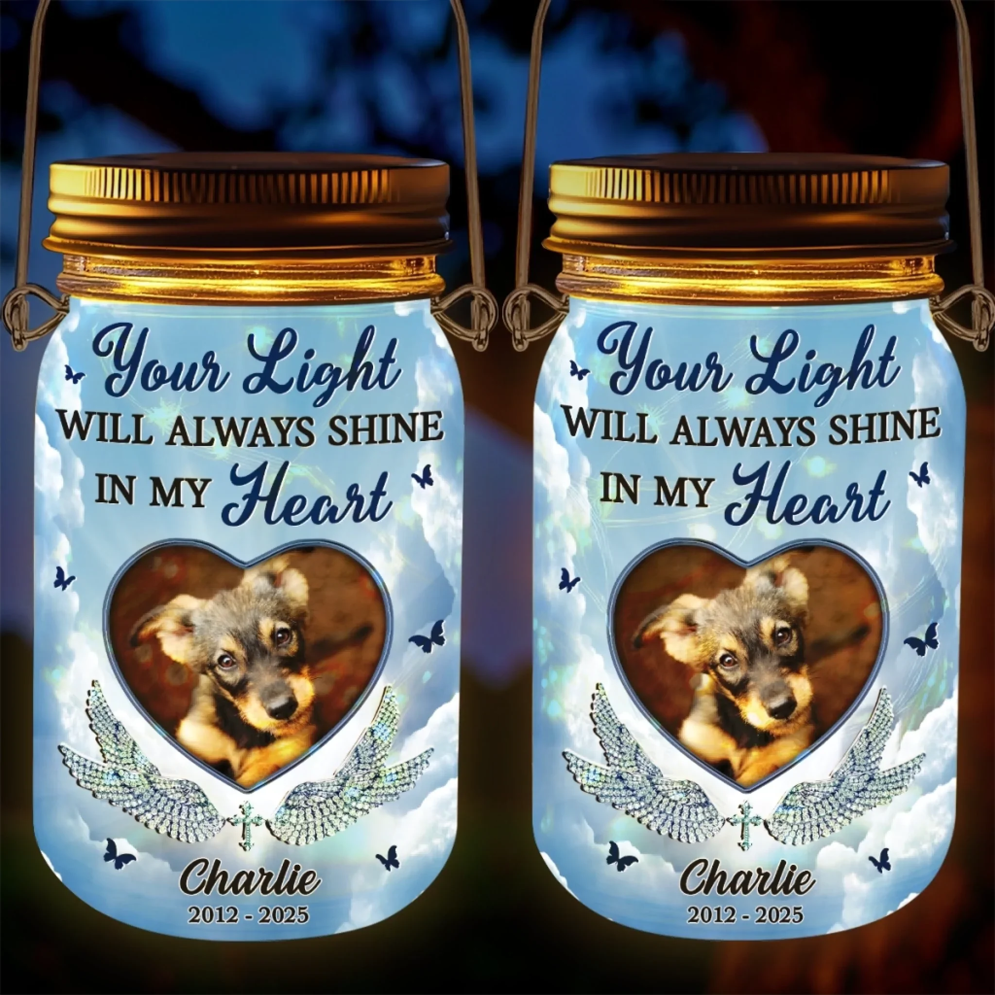 Custom Photo Your Light Still Shines - Memorial Personalized Custom Solar Jar Lantern - Sympathy Gift For Family Members