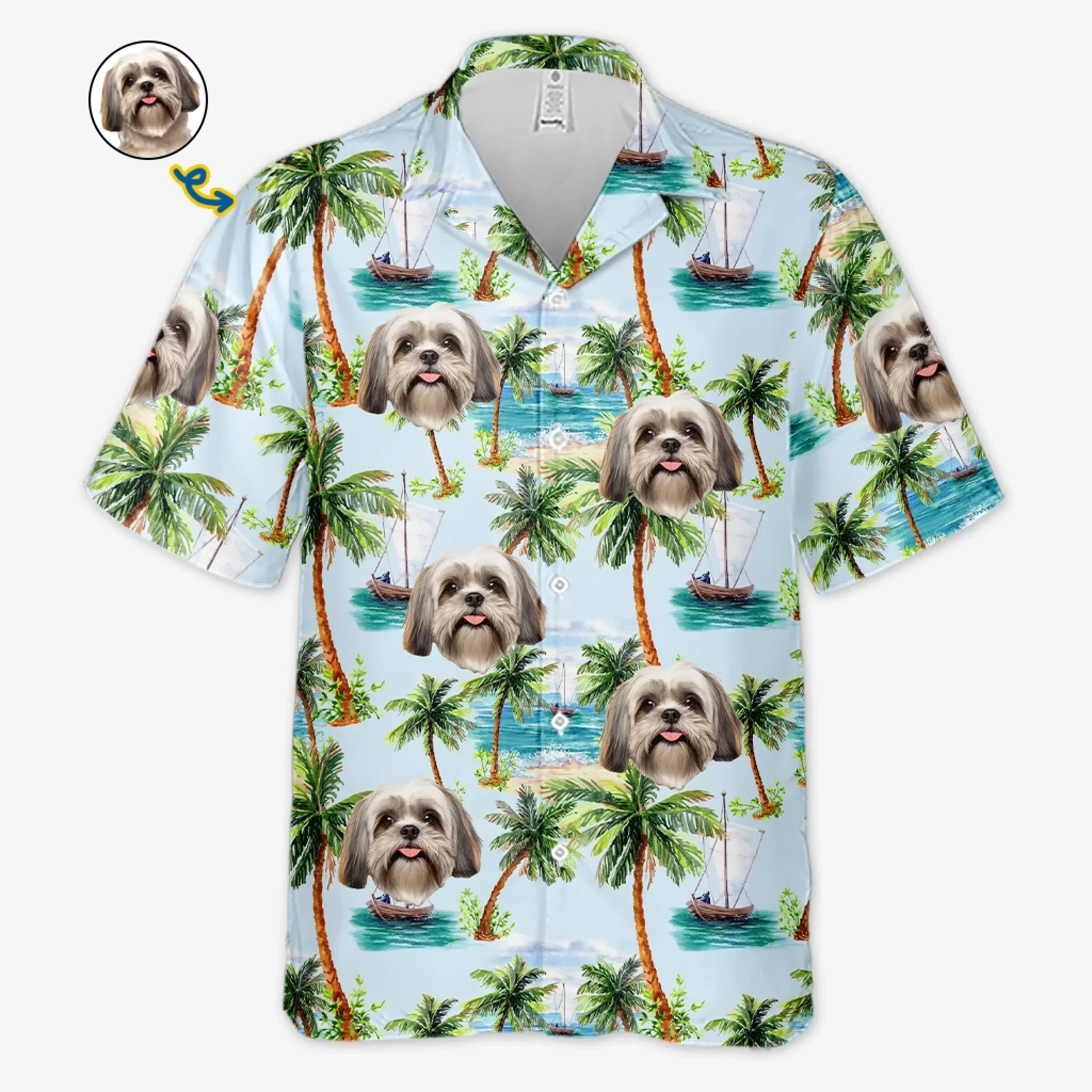 Custom Photo Paws And Palm Trees - Dog & Cat Personalized Custom Unisex Tropical Hawaiian Aloha Shirt - Summer Vacation Gift, Gift For Pet Owners, Pet Lovers