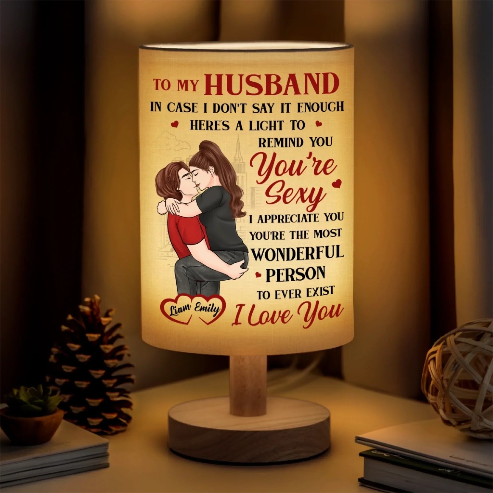 My Favorite View Is You - Couple Personalized Custom Linen Bedside Table Lamp - Gift For Husband Wife, Anniversary