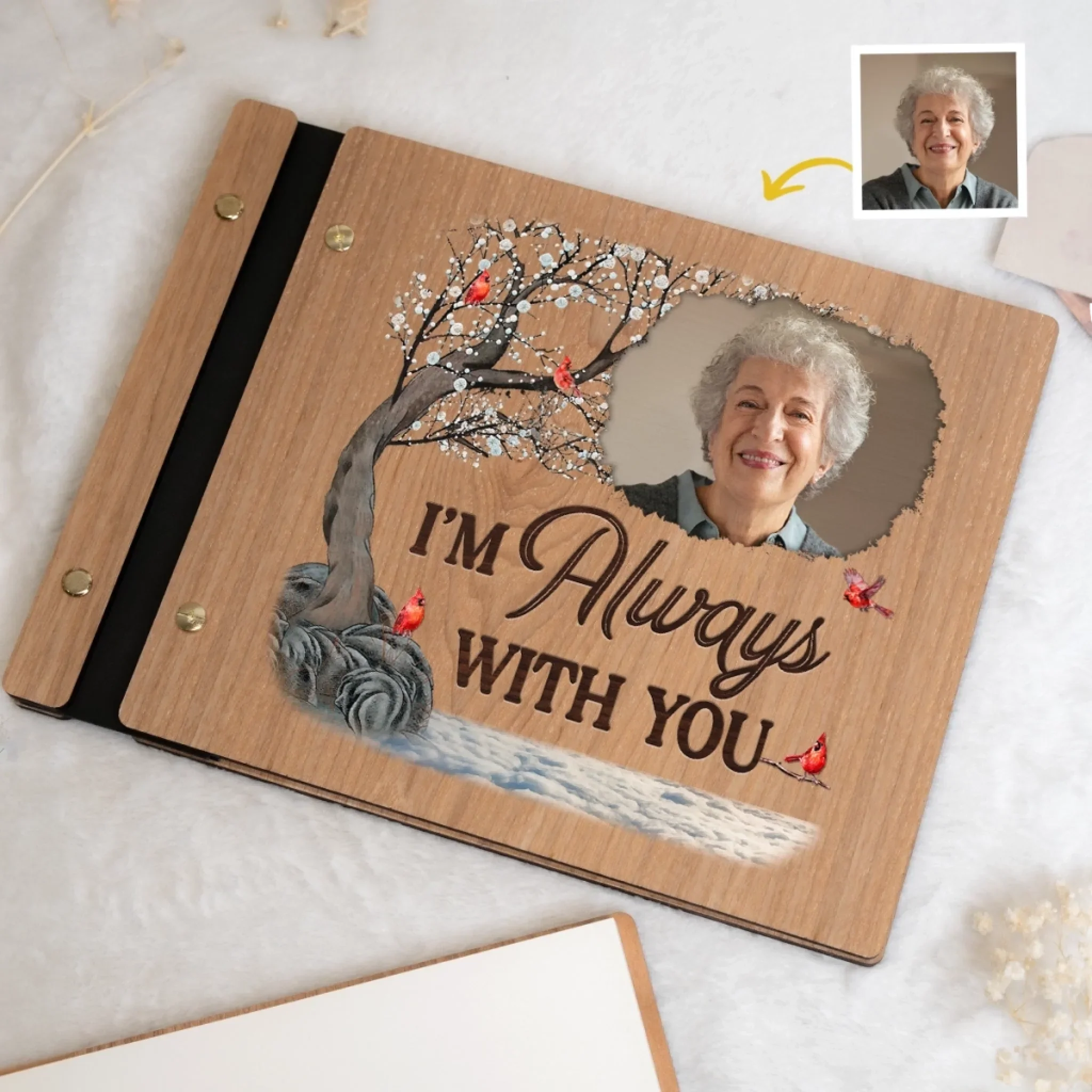 Custom Photo Time Passes, Love Remains - Memorial Personalized Custom Wooden Scrapbook - Sympathy Gift For Family Members