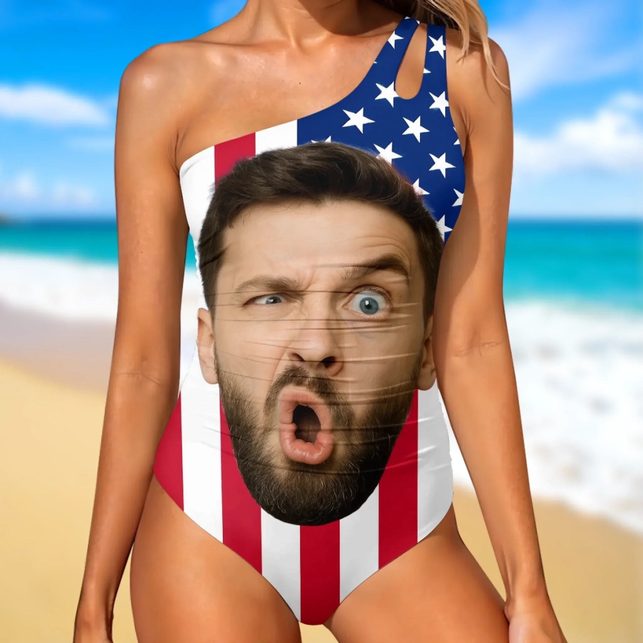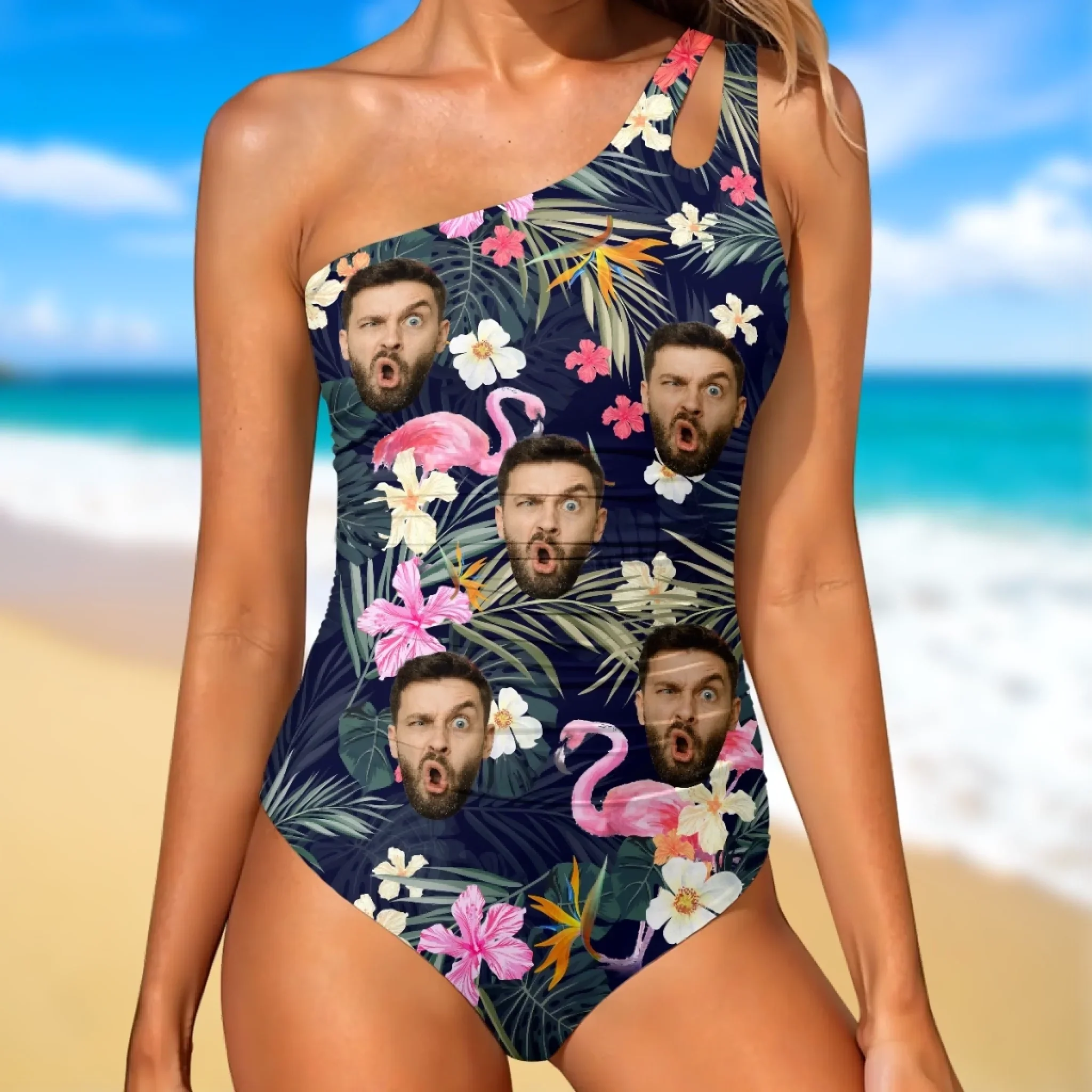 Custom Photo Sun s Out, Sass Out - Couple Personalized Custom One Piece Swimsuit - Summer Vacation Gift For Wife, Anniversary