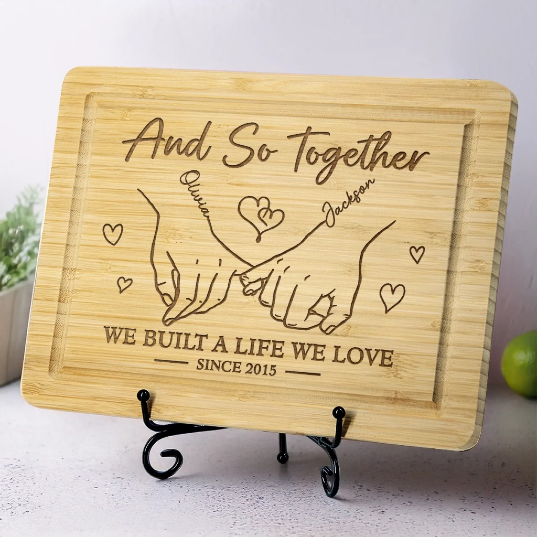 Stirred With Love Since Day One - Couple Personalized Custom Engraved Wooden Cutting Board - Gift For Husband Wife, Anniversary