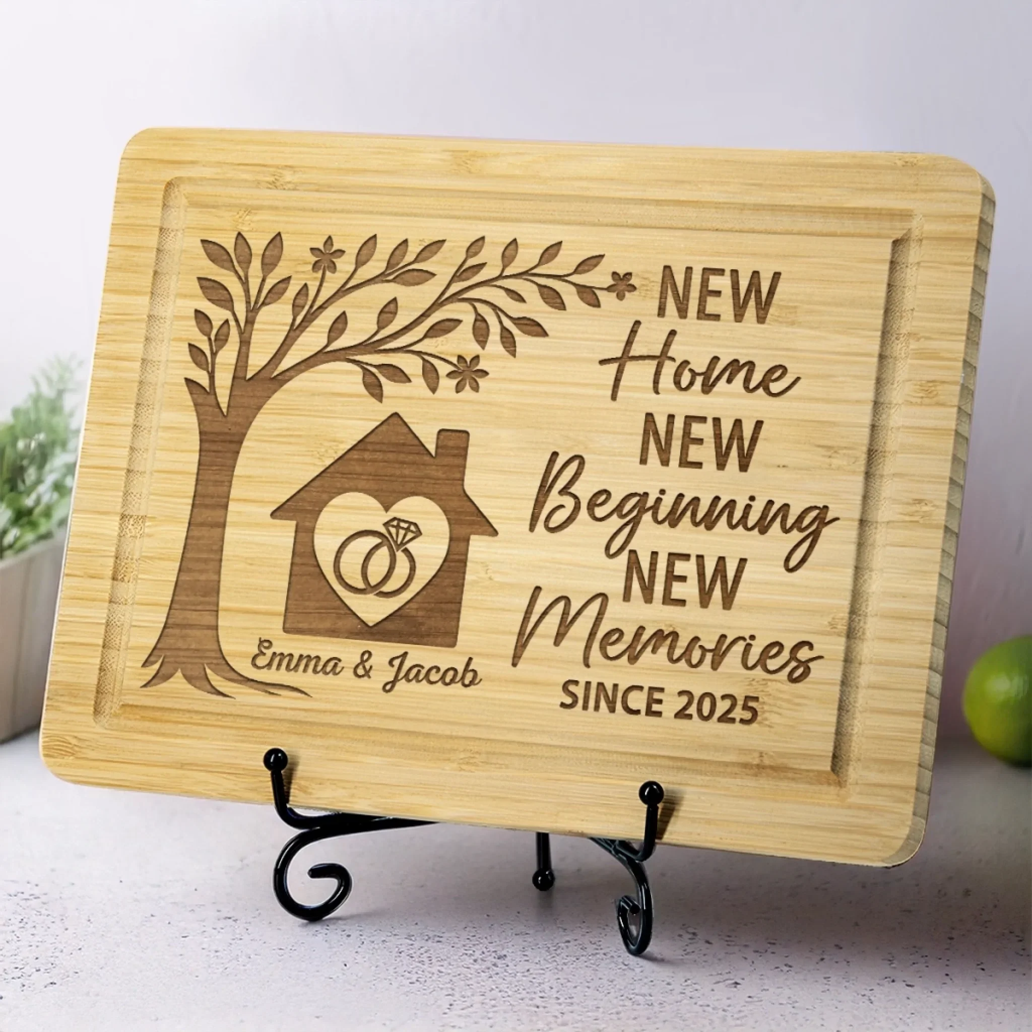 First Home, Best Memories - Couple Personalized Custom Engraved Wooden Cutting Board - Gift For Husband Wife, Anniversary