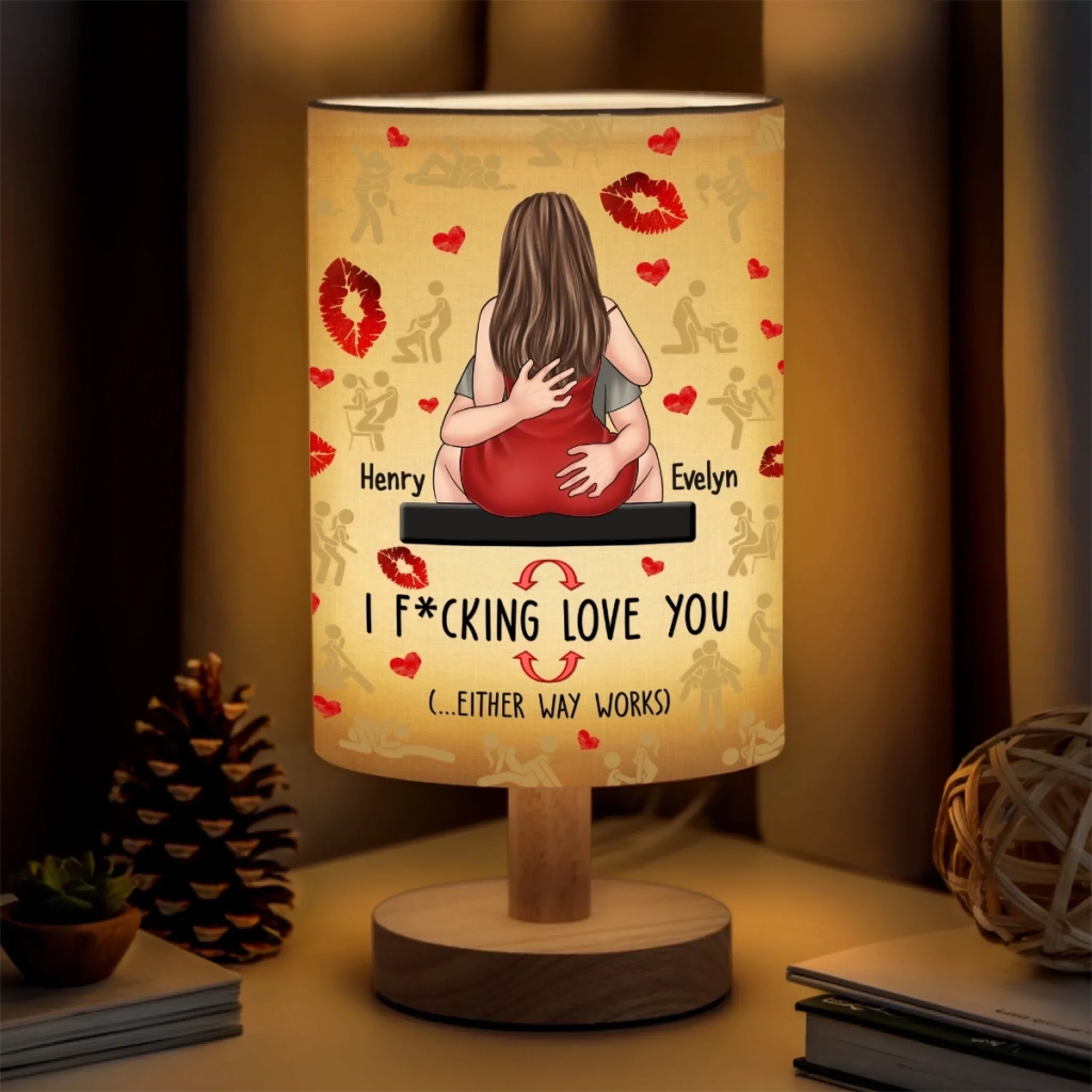 Our Love Comes With Positions - Couple Personalized Custom Linen Bedside Table Lamp - Gift For Husband Wife, Anniversary