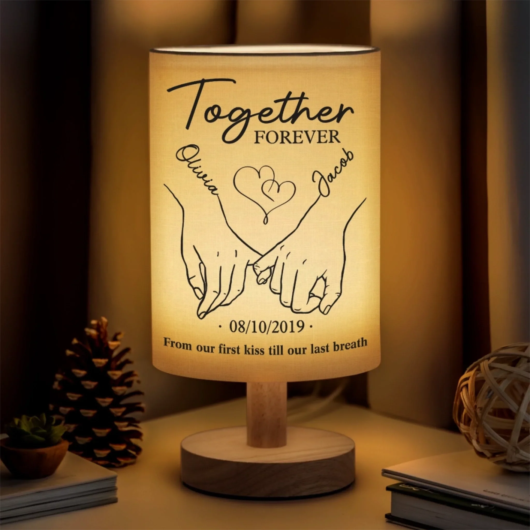 Together Forever - Couple Personalized Custom Linen Bedside Table Lamp - Gift For Husband Wife, Anniversary