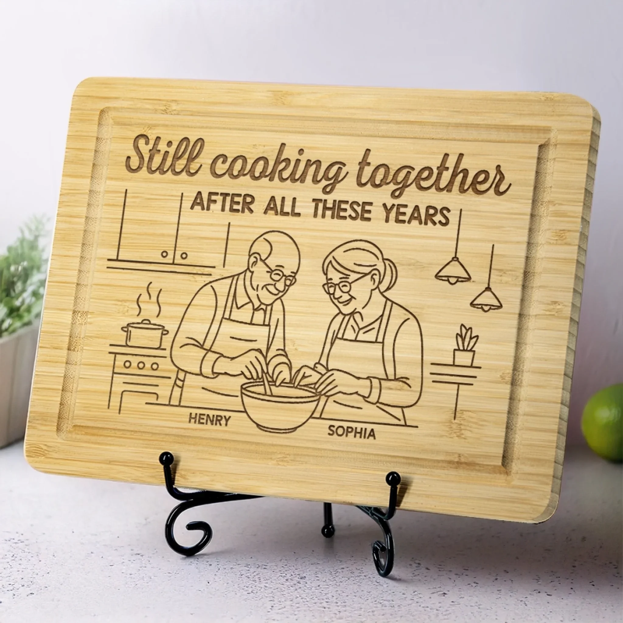 Seasoned With Stories And Spice - Couple Personalized Custom Engraved Wooden Cutting Board - Gift For Husband Wife, Anniversary