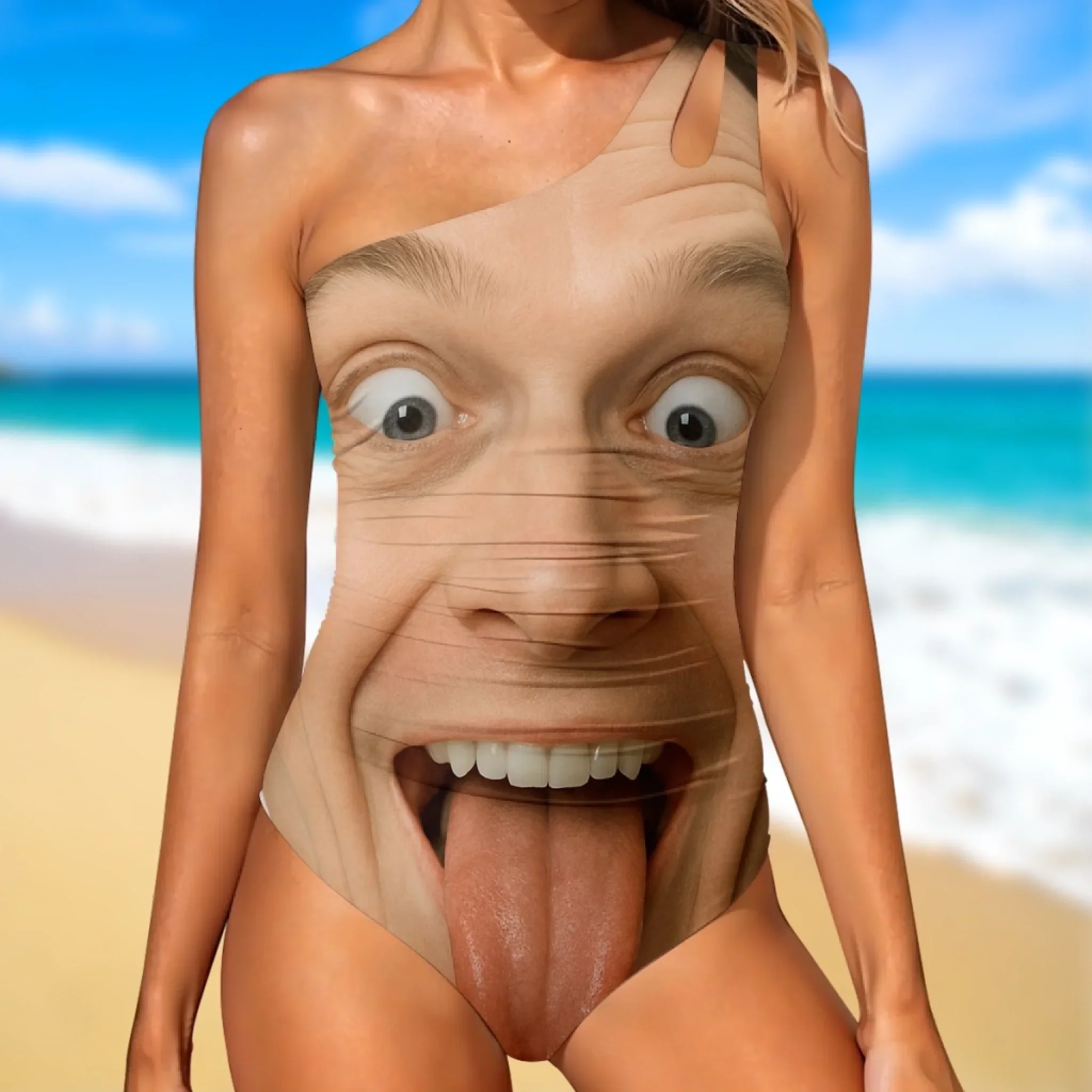 Custom Photo Sun Out, Tongue Out - Couple Personalized Custom One Piece Swimsuit - Summer Vacation Gift For Husband Wife, Anniversary