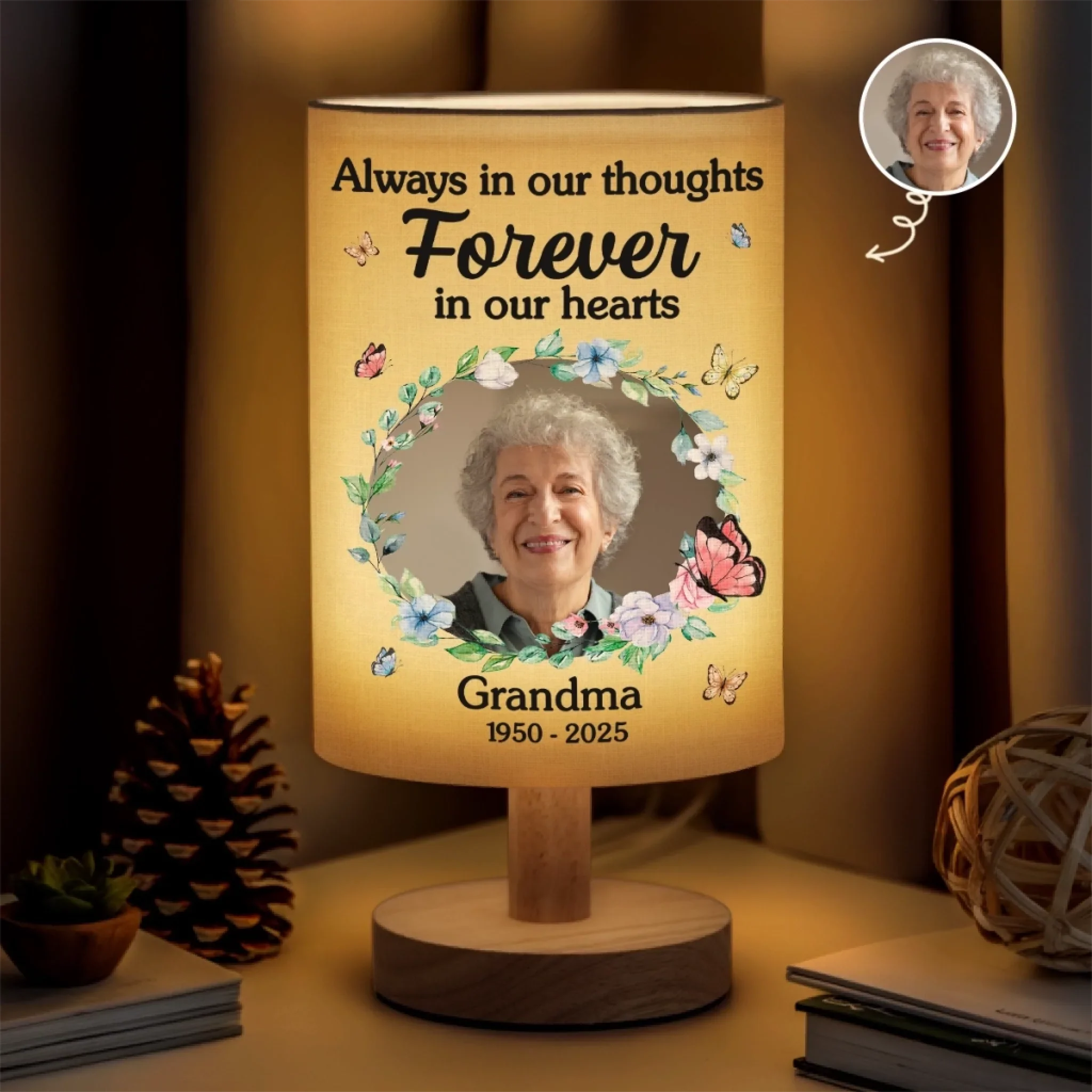 Custom Photo I'm Always With You - Memorial Personalized Custom Linen Bedside Table Lamp - Sympathy Gift For Family Members
