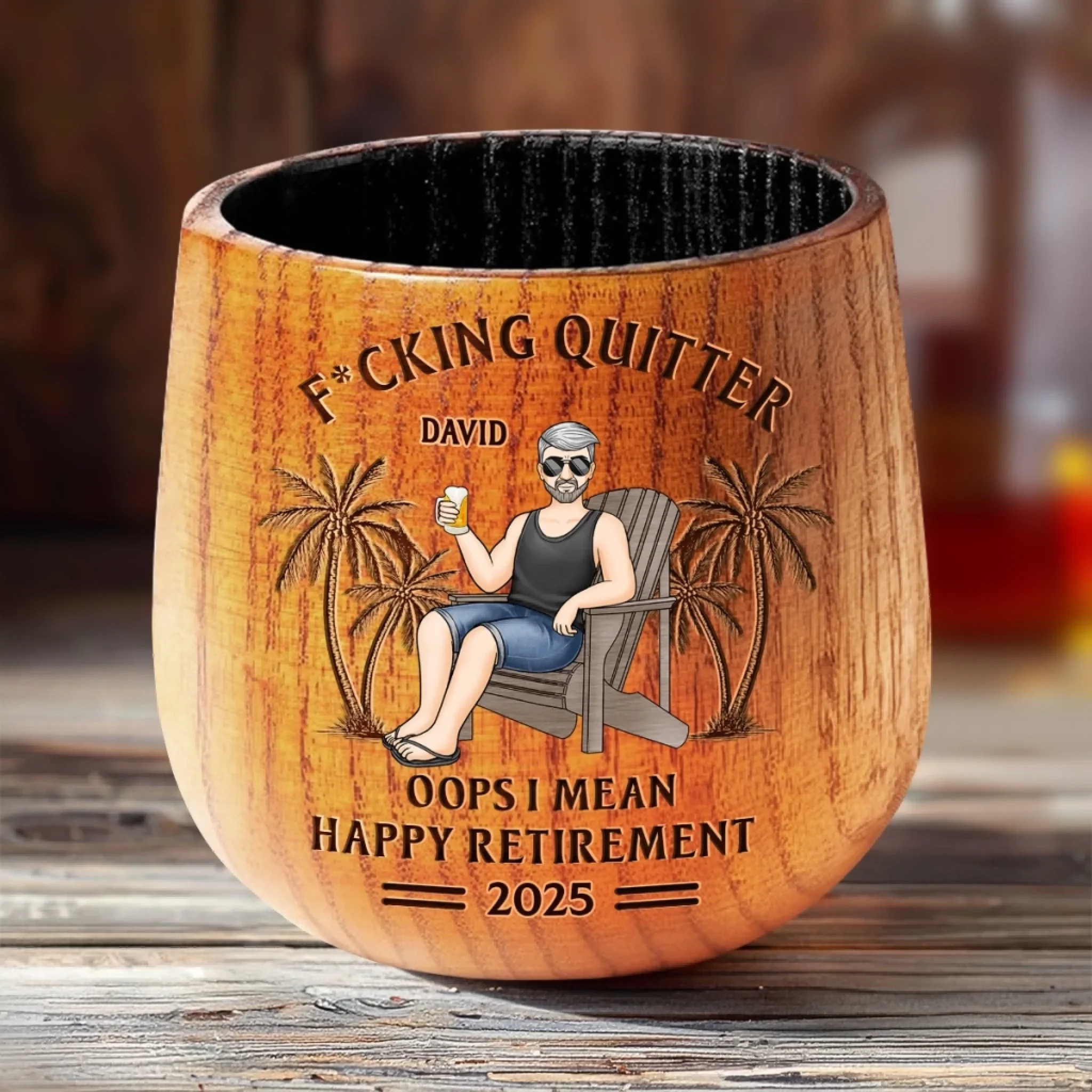 Retired And Loving It - Coworker Personalized Custom Wooden Whiskey Glass - Appreciation, Retirement Gift For Coworkers, Work Friends, Colleagues