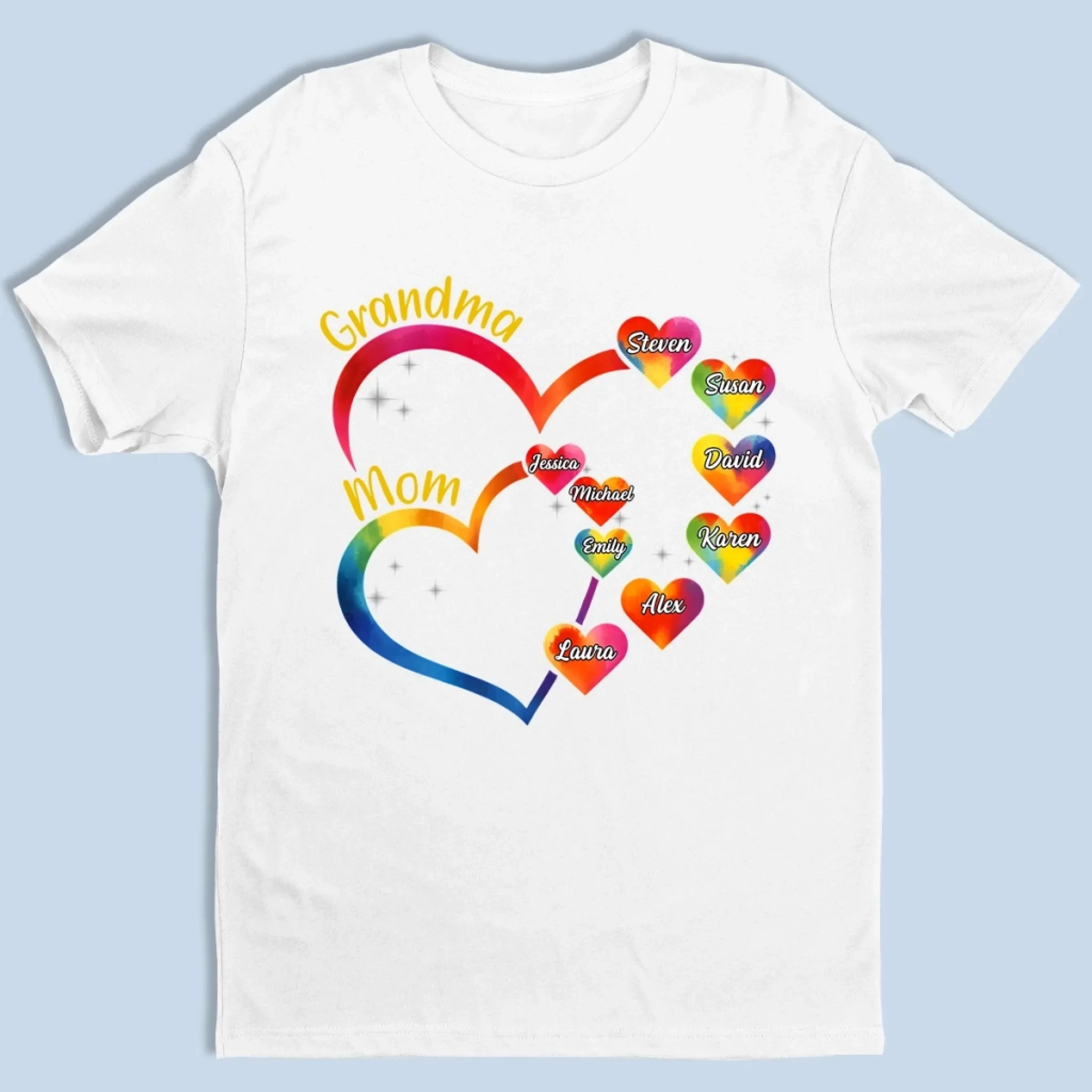 Love Stitched Into Every Name - Family Personalized Custom Unisex T-shirt, Premium T-shirt, Hoodie - Mother's Day, Gift For Mom, Grandma