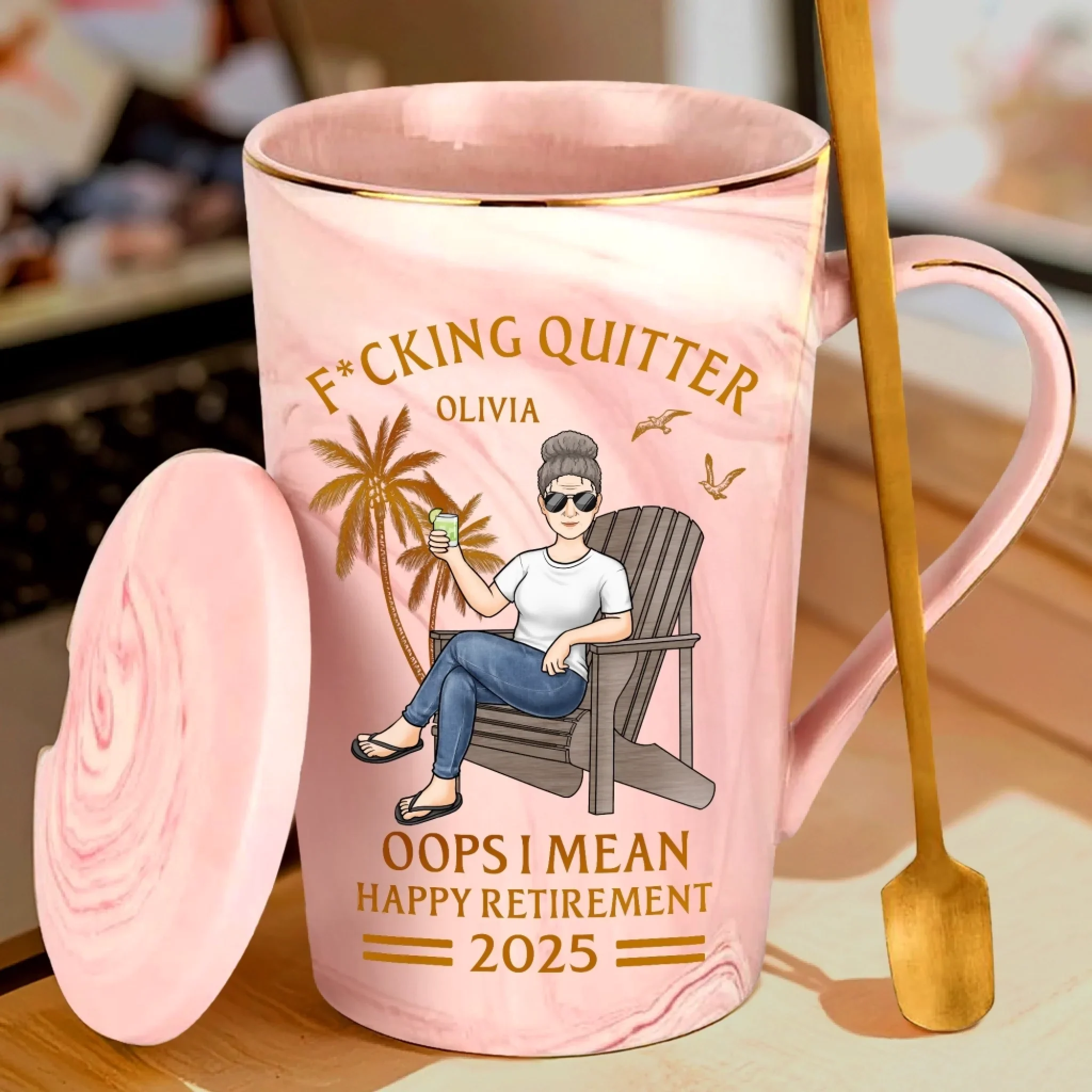 Retired And Now A Professional Napper - Coworker Personalized Custom 14oz Marble Mug - Appreciation, Retirement Gift For Coworkers, Work Friends, Colleagues