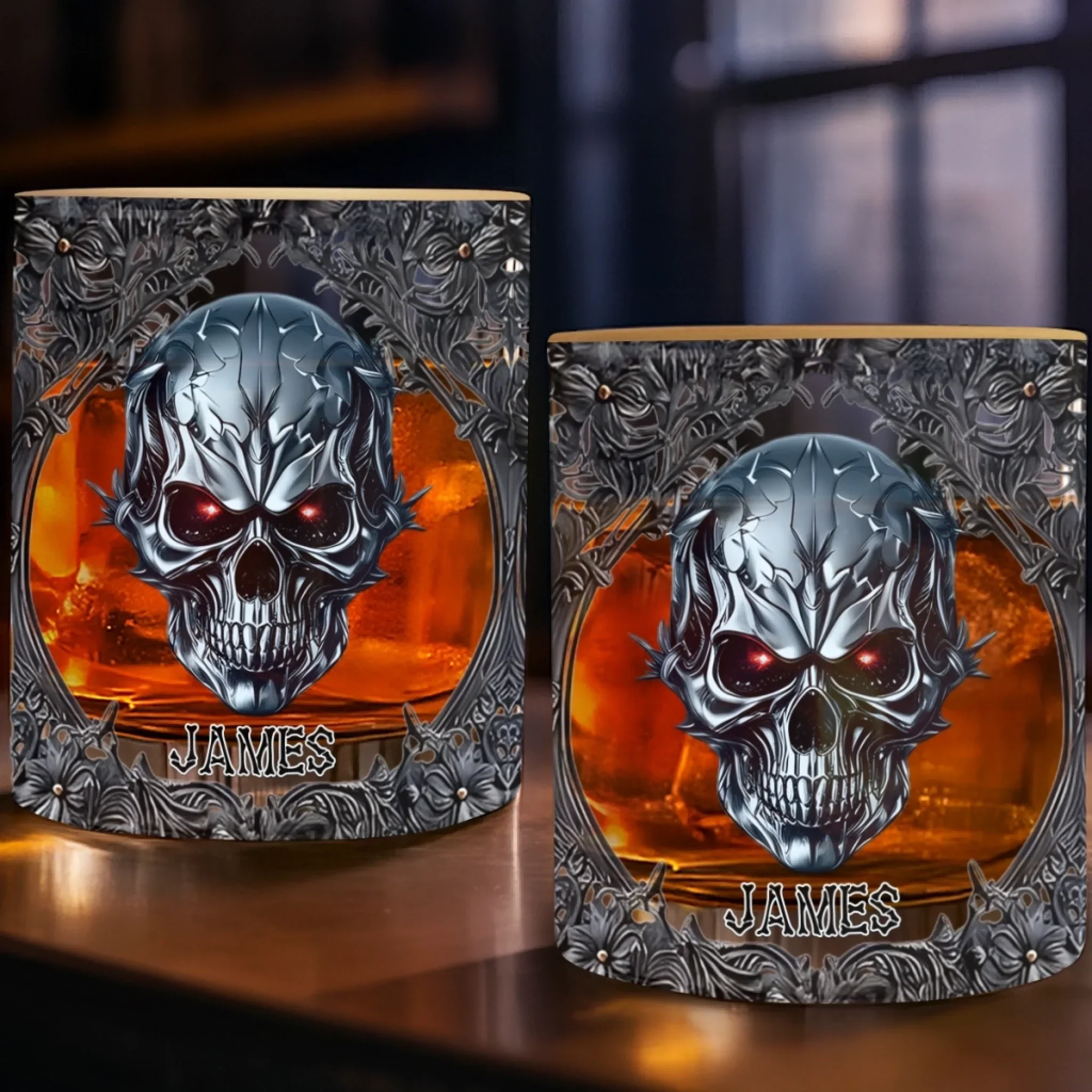 Custom Gothic Skull Whiskey Glass - Personalized Birthday Gifts For Bikers, Rock Music Fans, Best Friends, Family, Whiskey Lovers - Be Cool, Be Wild