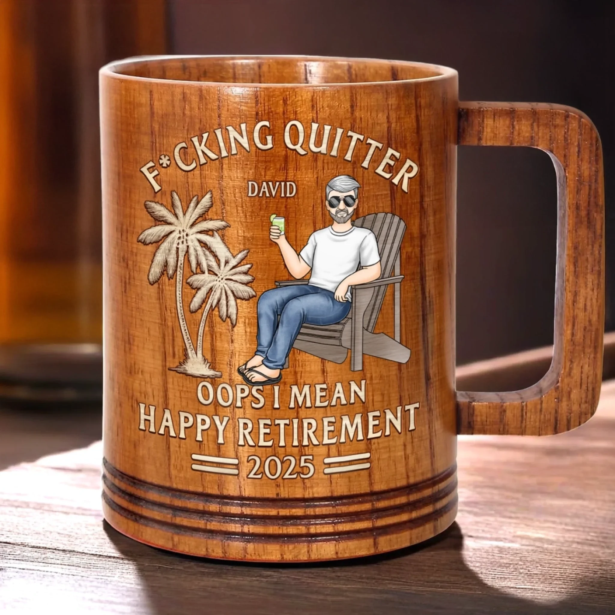 From Deadlines To Lifelines, Cheers - Coworker Personalized Custom Wooden Mug - Appreciation, Retirement Gift For Coworkers, Work Friends, Colleagues