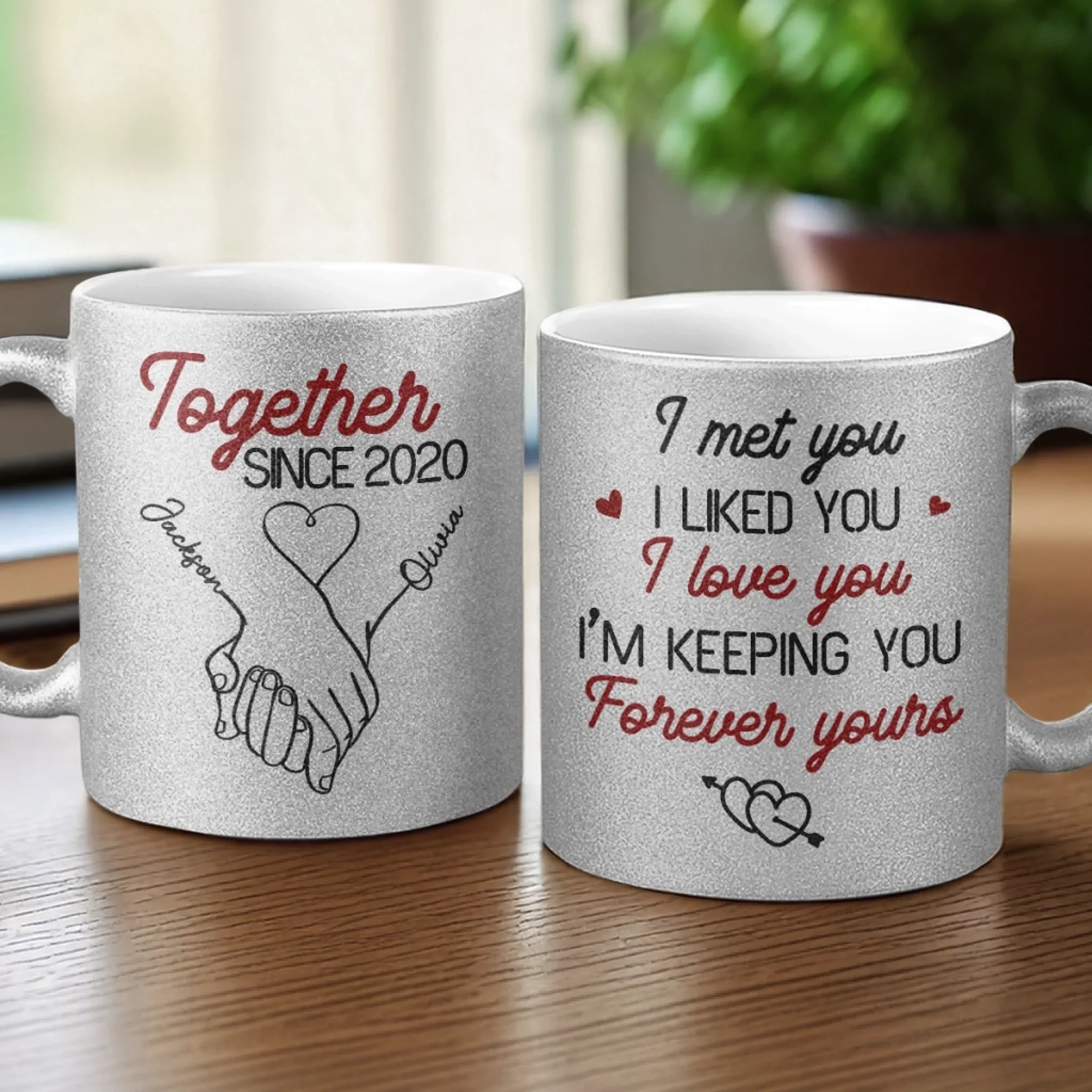 My Heart Clicks With Yours - Couple Personalized Custom Metallic Mug - Gift For Husband Wife, Anniversary