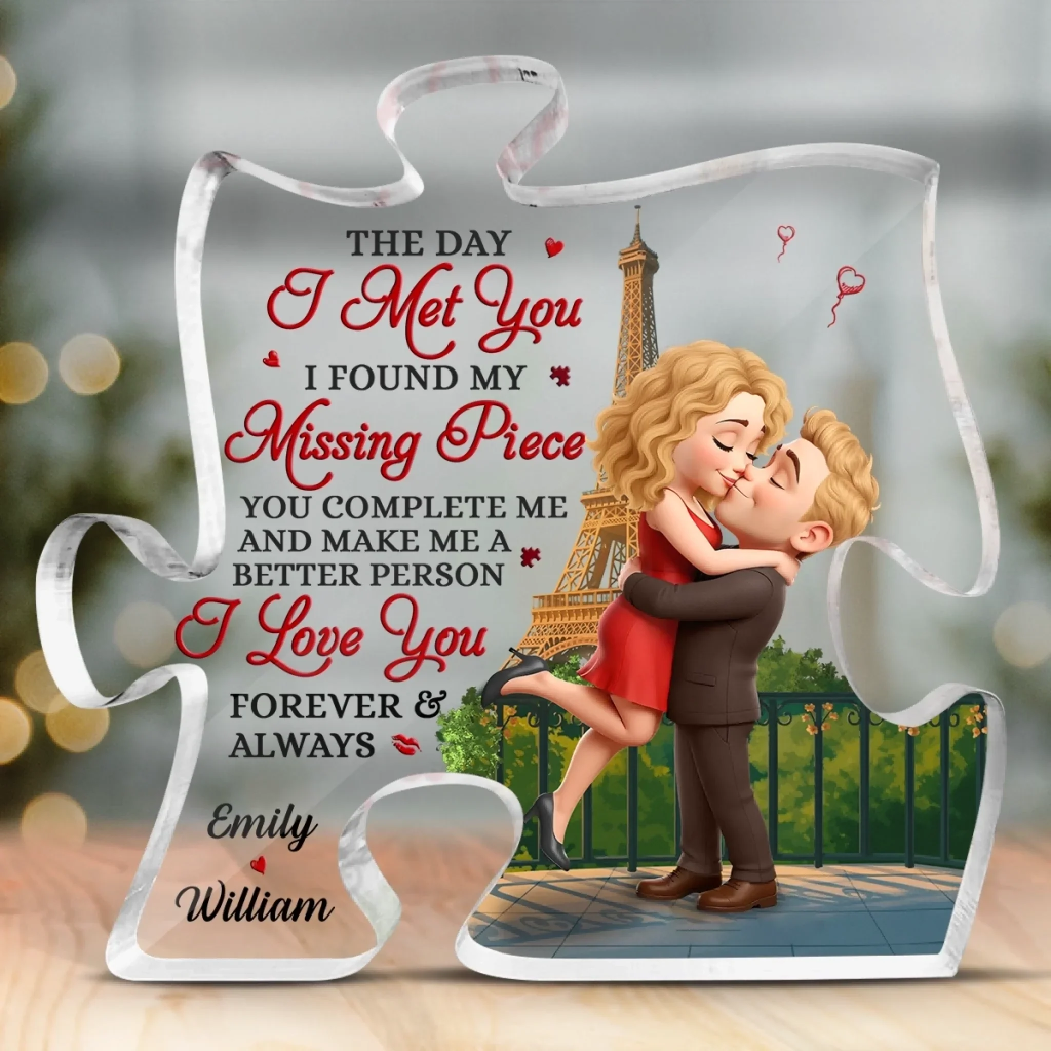 Love Since Day One - Couple Personalized Custom Puzzle Shaped Acrylic Plaque - Gift For Husband Wife, Anniversary