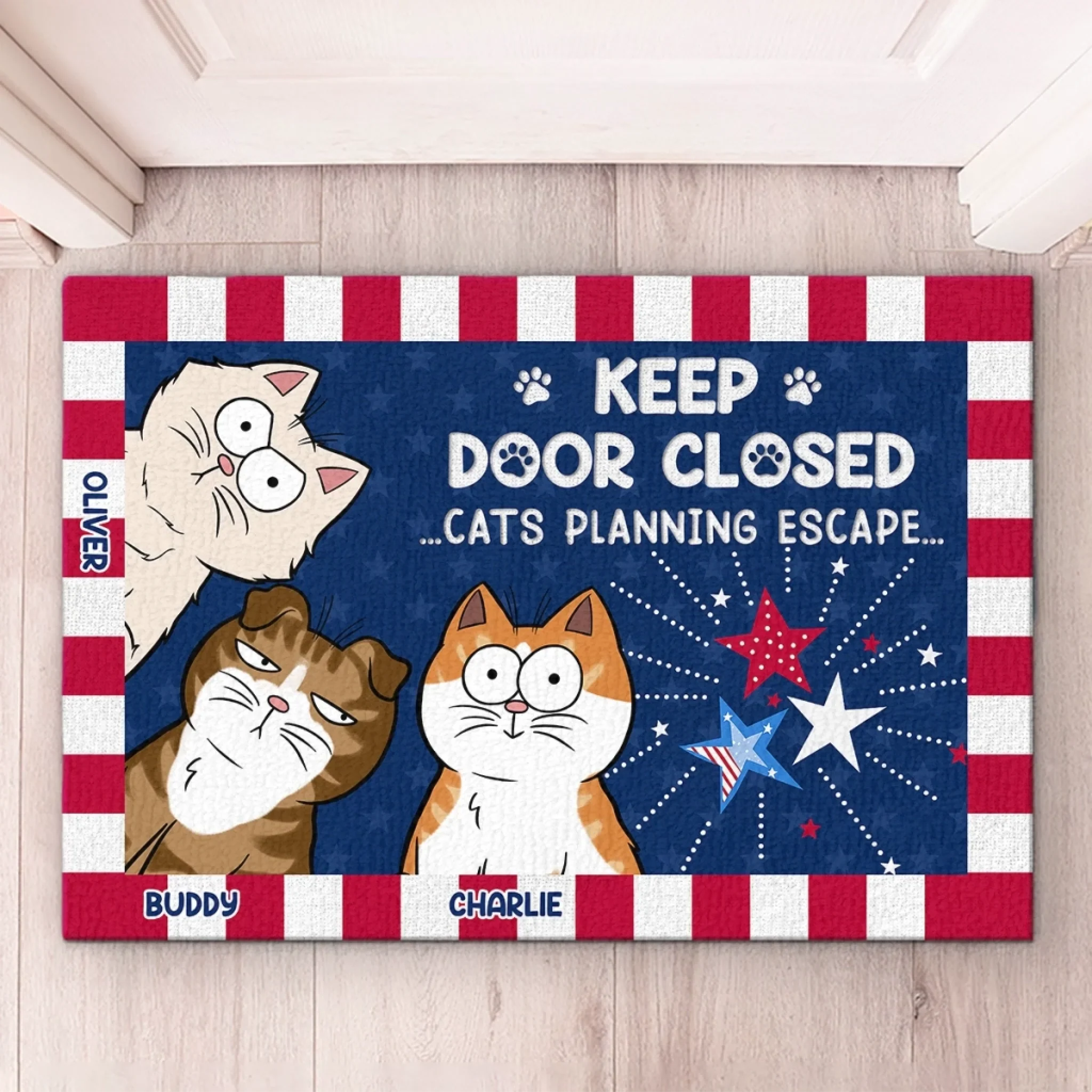 Custom Home Decor Decorative Mat - Personalized 4th Of July Gifts For Cat Lovers, Cat Mom And Dad - Watch Out, Someone Is Planning To Escape